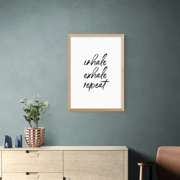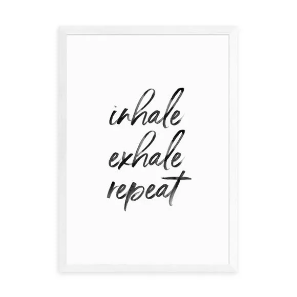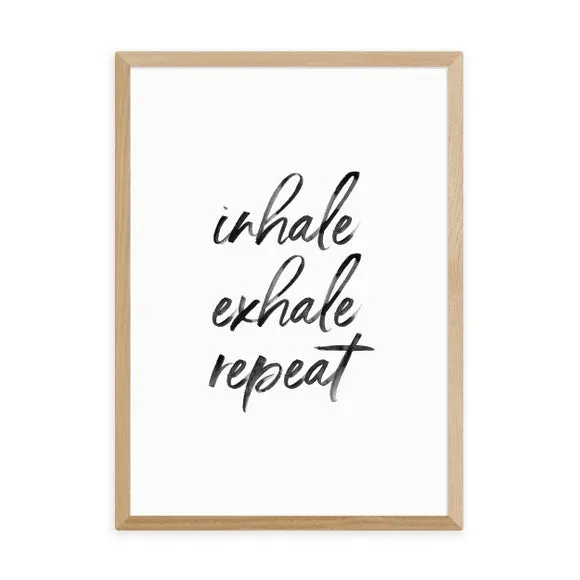 * Artwork by Oh Fine! Art* Typographic style* Printed on 210gsm acid-free archival paper* Available in A1, A2, A3 & A4 sizes* Frames available: black, white and oak effect* You can buy the print unframed too! Before the day starts and as the day ends, remind yourself to inhale, exhale and repeat so you can relax. You are able to customise the size and frame for this print! Choose from a variety of frame options and then pick your size. This way you can find the best design to suit your home interior. Each piece of artwork has gone through a giclee printing process which will help the print stay vibrant for years to come to keep your home looking fresh.