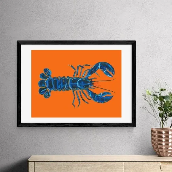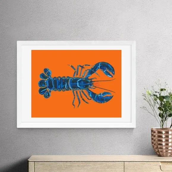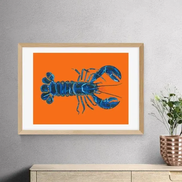 * Artwork by Alice Straker* Available in A1, A2, A3 & A4 sizes* Obeche Wood Frames available in black, white and oak effect* You can buy the print unframed too!* Prints are made using the Giclee printing process, lasting up to 70 years from fading* Printed on 210gsm acid free archival paper with a digital white border Bold and colourful, this lobster print is perfect for introducing a sense of coastal charm to your home. You are able to customise the size and frame for this print! Choose from a variety of frame options and then pick your size. This way you can find the best design to suit your home interior. Please Note: For every print sold, a percentage of profit is donated to Cool Ear–h - a charity combating deforestation in the rainforest.