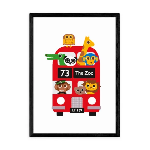 Home  /  Decor  /  London Bus Zoo Wall Print - Multicolor, Paper