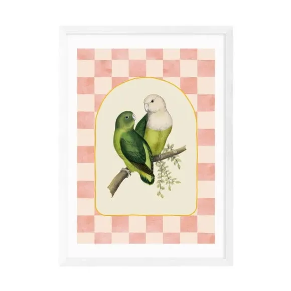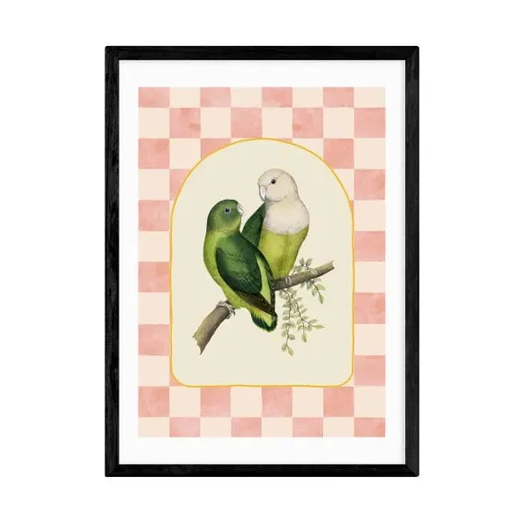 Home  /  Decor  /  Lovebirds Wall Print - Pink, Archival Paper