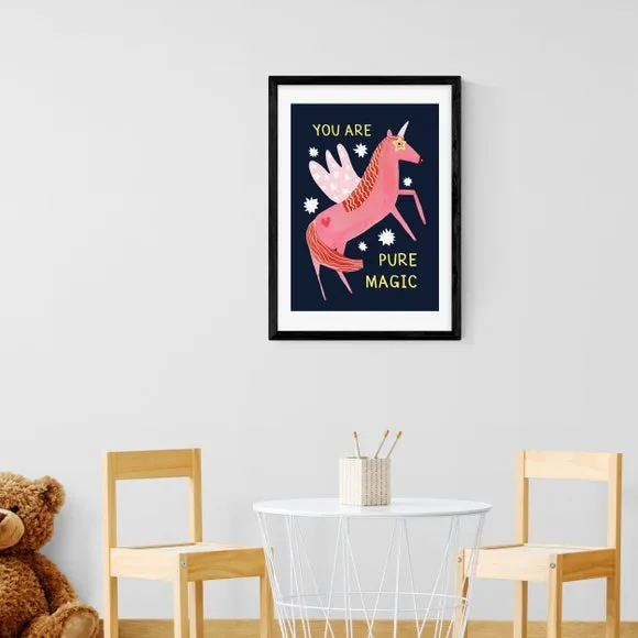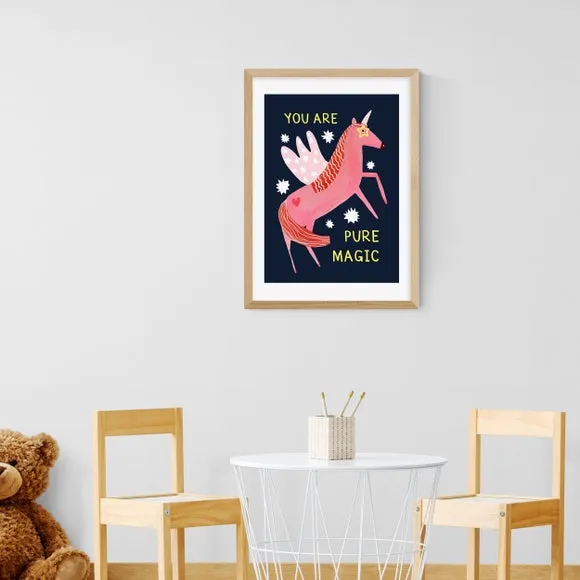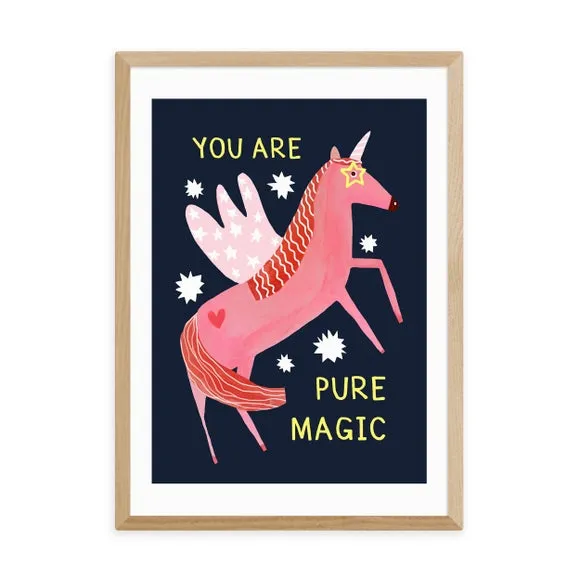 * Artwork by Darcie Olley* Magical unicorn design* Portrait orientation* Printed on 210gsm acid-free archival paper* Available in A1, A2, A3 & A4 sizes* Frame options: black, white and oak wood effect* Available in an unframed option Fill your space with magical unicorn vibes with this superb artwork by Darcie Olley. Perfect for bringing a sprinkle of pink colour and words of encouragement, this print is made to last as it uses a Giclee printing process to stay vibrant and prevent fading over years. Each design is available in four print sizes and a variety of frame options, including unframed, so you can display your artwork however you wish.