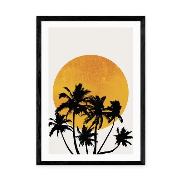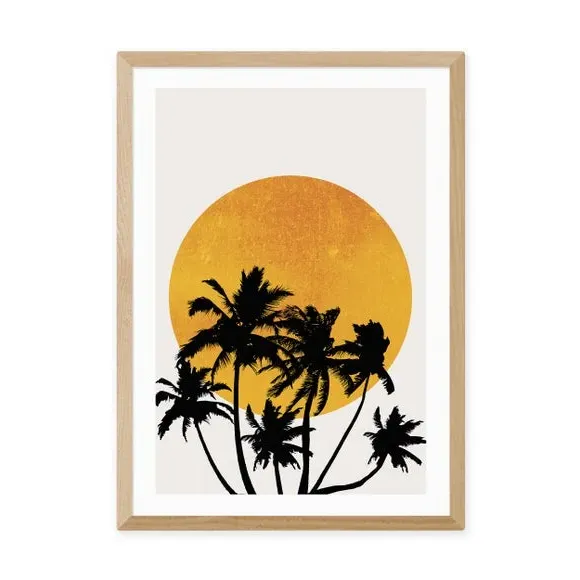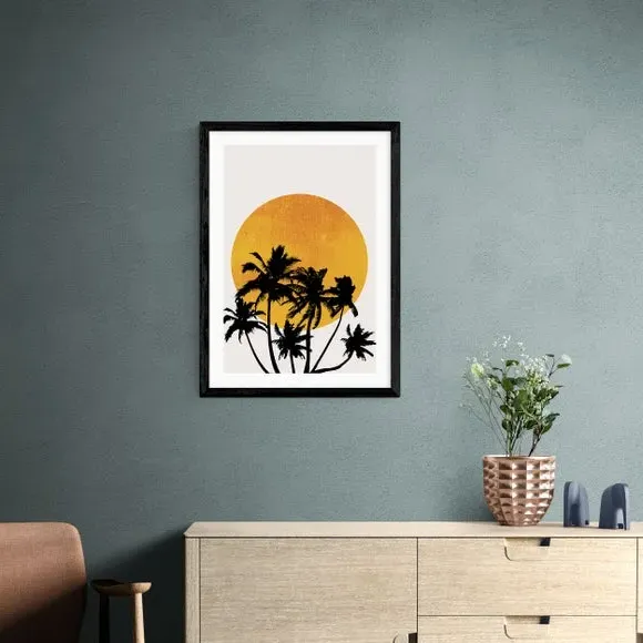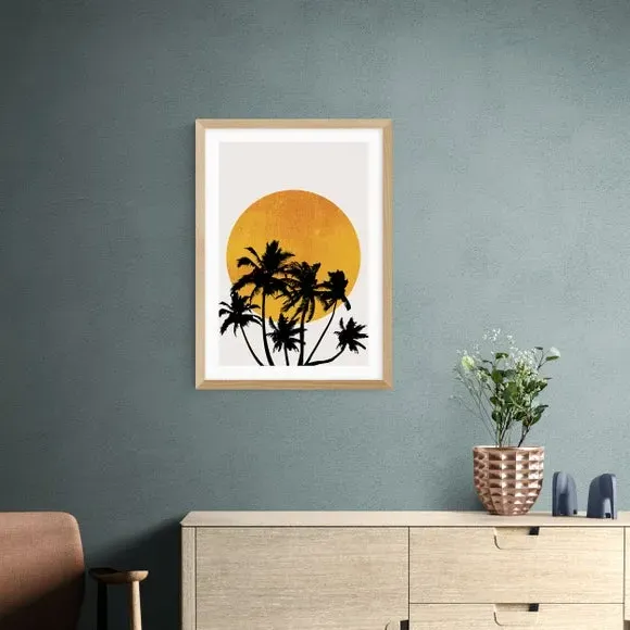 * Artwork by Kubistika* Available in A1, A2, A3 & A4 sizes* Obeche Wood Frames available in black, white and oak effect* You can buy the print unframed too!* Prints are made using the Giclee printing process, lasting up to 70 years from fading* Printed on 210gsm acid free archival paper with a digital white border Experience the beauty of a fleeting moment with " Miami Beach Sunset" by Kubistika. This captivating print captures the warm glow of the setting sun against the silhouette of palm trees, transporting you to the tranquil shores of Miami Beach. You are able to customise the size and frame for this print! Choose from a variety of frame options and then pick your size. This way you can find the best design to suit your home interior.