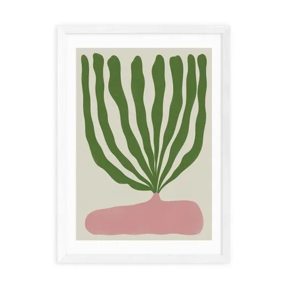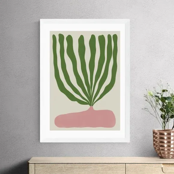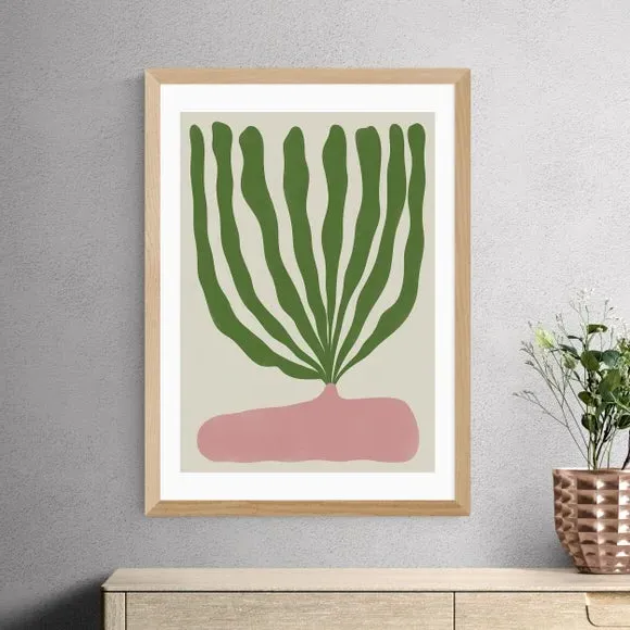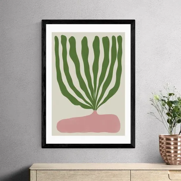 The Modern Vase II Art Print offers contemporary style with its whimsical design reminiscent of Matisse's iconic artistic movements. Featuring Giclee printing technology on 210gsm acid-free archival paper, the print provides fade resistance for up to 70 years. The digital white border adds a clean finish, while optional Obeche wood frames in black, white, or oak effect complement various decor styles. Available in multiple sizes from A4 to A1 to suit different spaces.