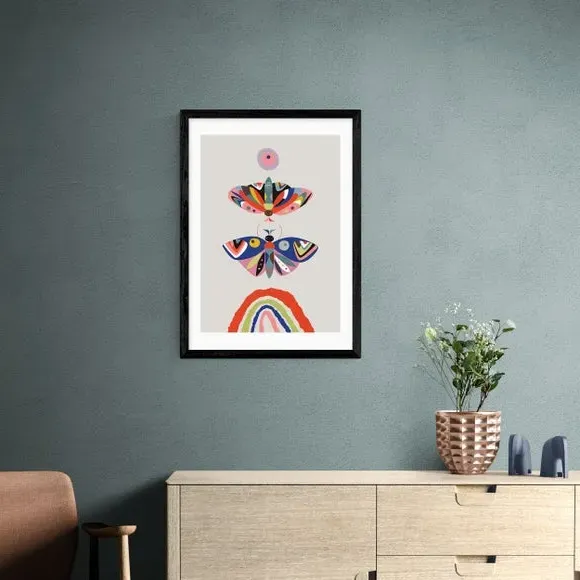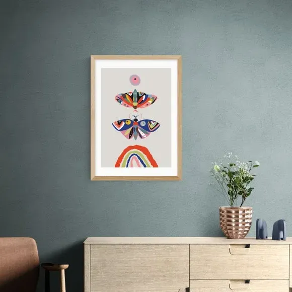 * Artwork by Rachel Lee* Vibrant nature theme* Portrait orientation* Printed on 210gsm acid-free archival paper* Available in A1, A2, A3 & A4 sizes* Frame options: black, white and oak wood effect* Available in an unframed option Add colour and pattern to a living space, hallway with this wonderful moth print by Rachel Lee. Perfect for filling a dull space with bright colours and creativity, this print is made to last as it uses a Giclee printing process to stay vibrant and prevent fading over years. Each design is available in four print sizes and a variety of frame options, including unframed, so you can display your artwork however you wish.