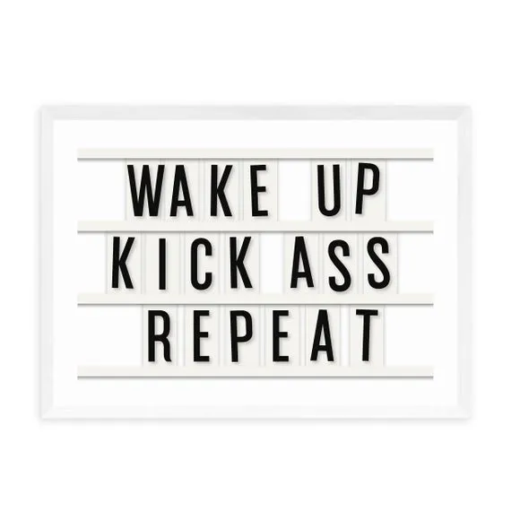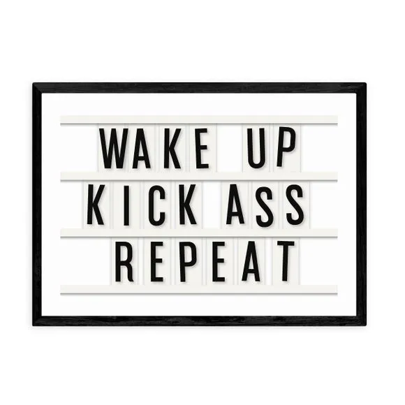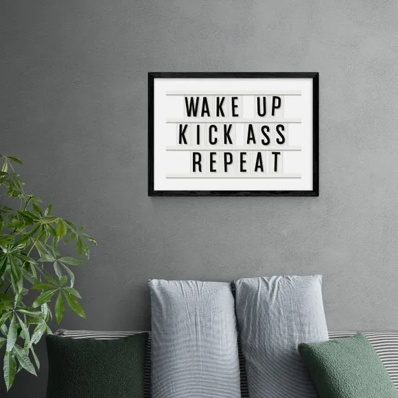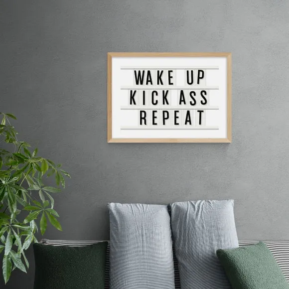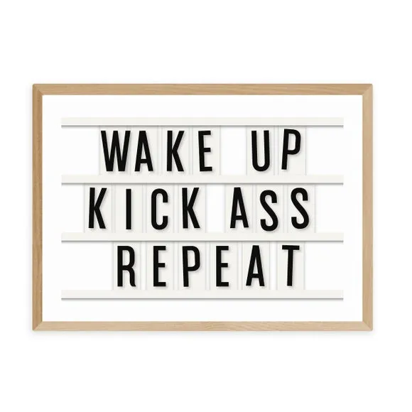 The motivational typography print offers inspiring daily encouragement with its bold repeat design in landscape orientation. Printed on 210gsm acid-free archival paper using Giclee printing process, it provides fade-resistant vibrancy for years. The print comes in multiple size options from A4 to A1, while frame choices include black, white, and oak wood effect finishes for versatile display options.