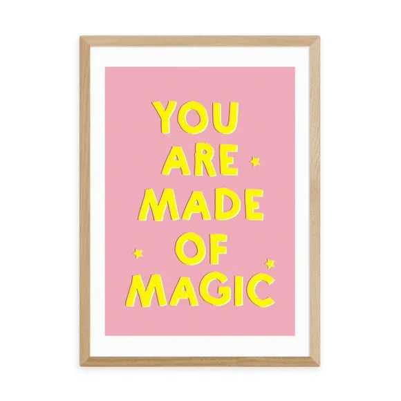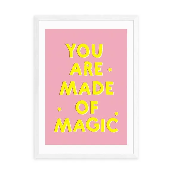 * Artwork by Show Me Mars* Motivational typographic print* Portrait orientation* Printed on 210gsm acid-free archival paper* Available in A1, A2, A3 & A4 sizes* Frame options: black, white and oak wood effect* Available in an unframed option Sprinkle some magical sparkle and words of encouragement on your blank walls with this superb artwork by Show Me Mars. Perfect for adding to a bedroom or office, this print is made to last as it uses a Giclee printing process to stay vibrant and prevent fading over years. Each design is available in four print sizes and a variety of frame options, including unframed, so you can display your artwork however you wish.