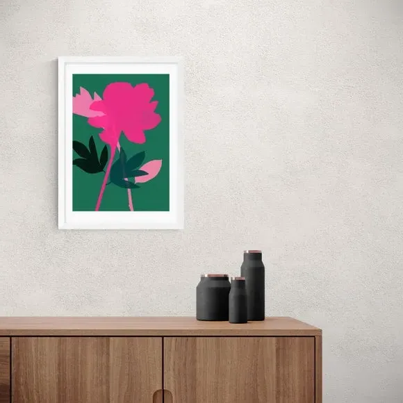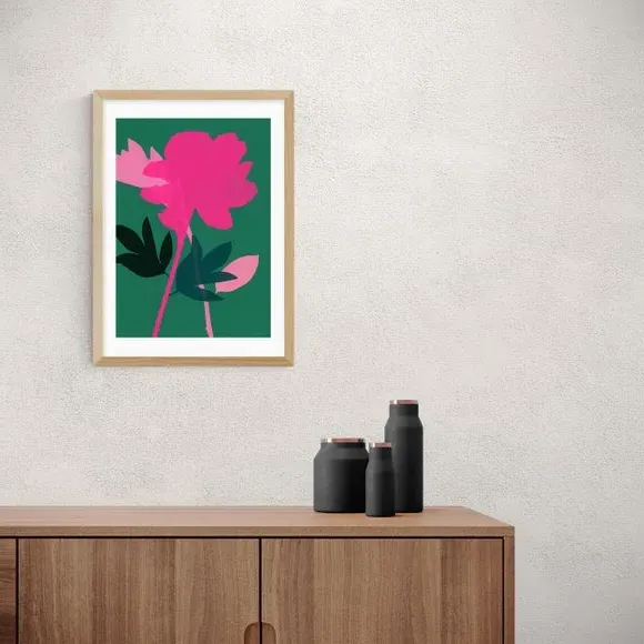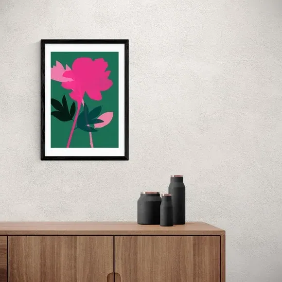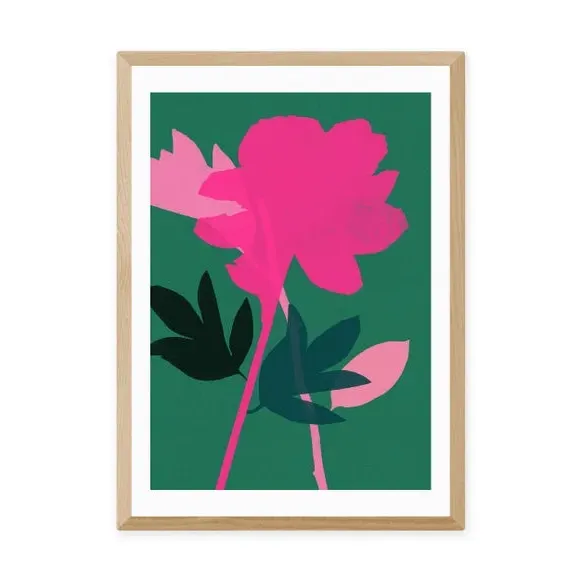 * Artwork by Garima Dhawan* Floral design* Portrait orientation* Printed on 210gsm acid-free archival paper* Available in A1, A2, A3 & A4 sizes* Frame options: black, white and oak wood effect* Available in unframed option Refresh your living space with this gorgeous and simple print featuring a peony floral theme and colourful vivid shapes. Made using a Giclee printing process to prevent fading, this wonderful print will stay vibrant for years to come. Each design is available in four print sizes and a variety of frame options, including unframed, so you can display your artwork however you wish.