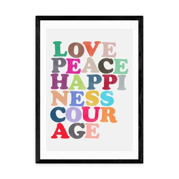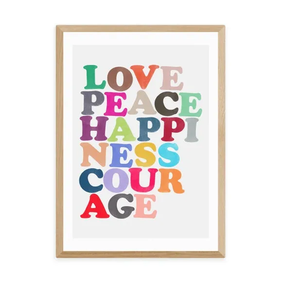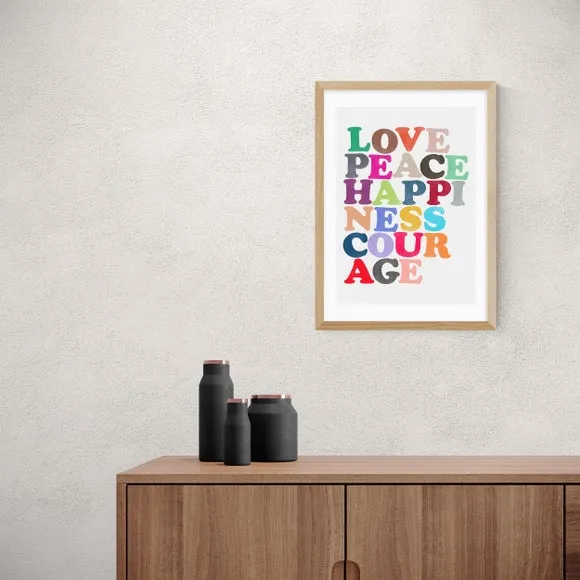 * Artwork by Garima Dhawan* Repetitive shapes* Portrait orientation* Printed on 210gsm acid-free archival paper* Available in A1, A2, A3 & A4 sizes* Frame options: black, white and oak wood effect* Available in unframed option Bring a pop of colour and motivational words to your living space with this bright, fun and encouraging print featuring key words to boost your mood and day. Made using a Giclee printing process to prevent fading, this wonderful print will stay vibrant for years to come. Each design is available in four print sizes and a variety of frame options, including unframed, so you can display your artwork however you wish.