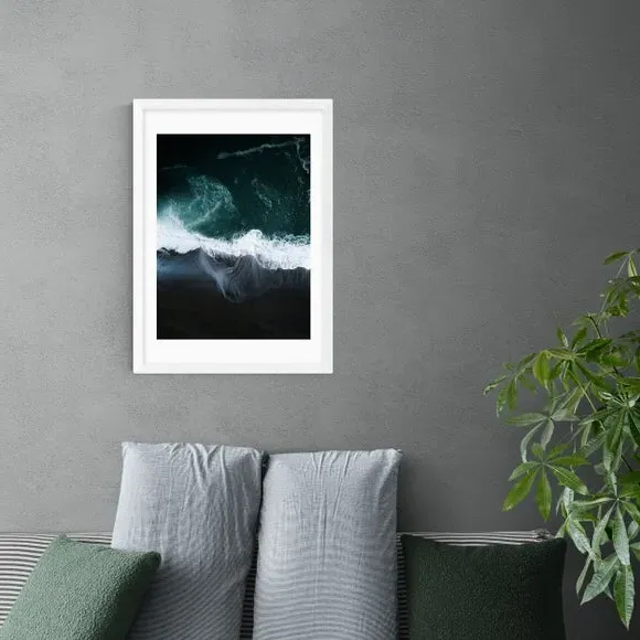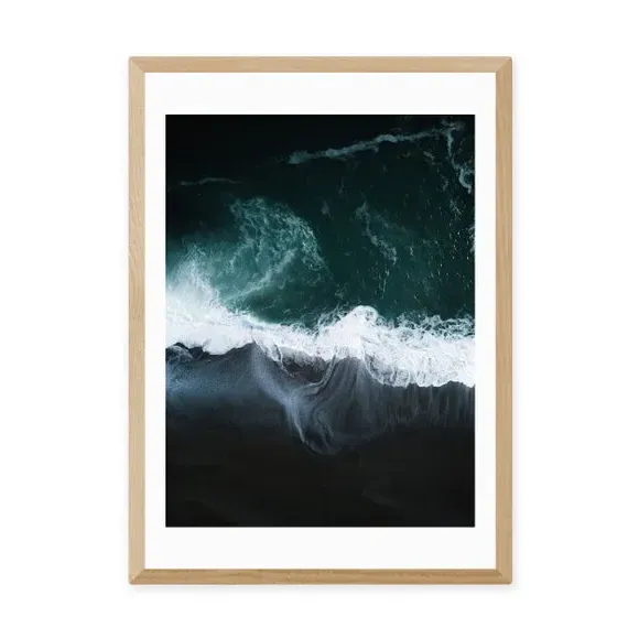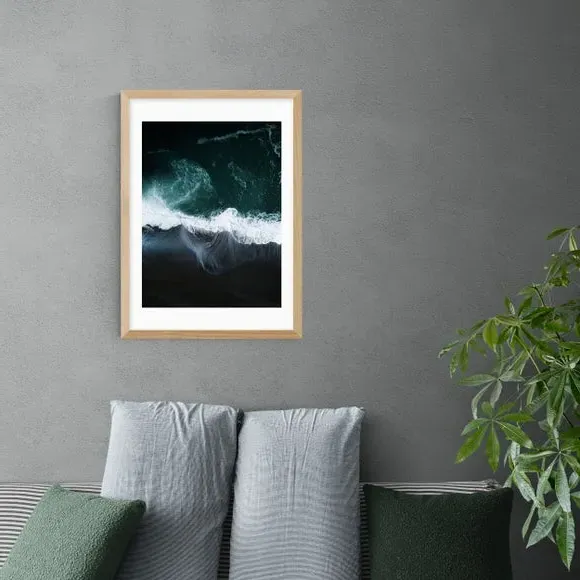 * Artwork by Honeymoon Hotel* Coastal theme* Portrait orientation* Printed on 210gsm acid-free archival paper* Available in A1, A2, A3 & A4 sizes* Frame options: black, white and oak wood effect* Available in unframed option Add deep tones of colour and texture to your home with this photographic style print showing a simple aerial view shot of a waves. Made using a Giclee printing process to prevent fading, this print will stay vibrant for years to come and Each design is available in four print sizes and a variety of frame options, including unframed, so you can display your artwork however you wish.