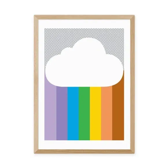 * Artwork by Dicky Bird* Rainbow graphic print* Portrait orientation* Printed on 210gsm acid-free archival paper* Available in A1, A2, A3 & A4 sizes* Frame options: black, white and oak wood effect* Available in an unframed option Add this cute and colourful print to your little one’s nursery or bedroom for a simplistic but decorative graphic design. This print is made to last as it uses a Giclee printing process to stay vibrant and prevent fading over years. Each design is available in four print sizes and a variety of frame options, including unframed, so you can display your artwork however you wish.