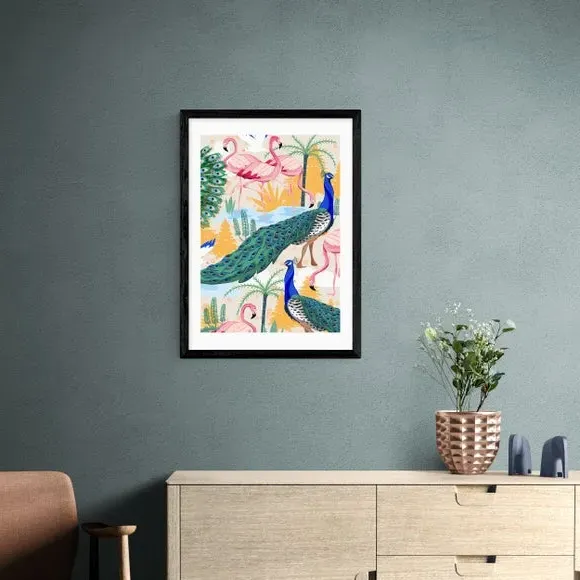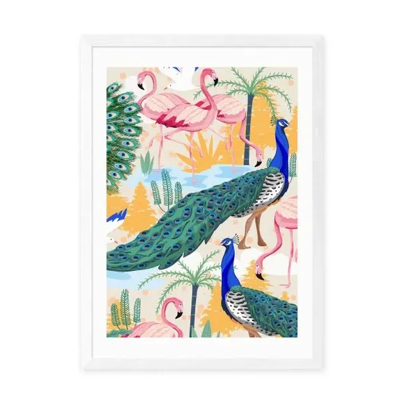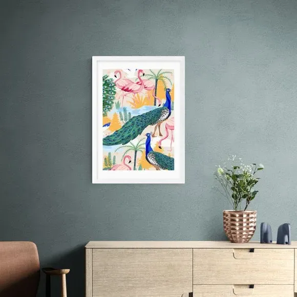 * Artwork by 83 Oranges* Exotic bird theme* Portrait orientation* Printed on 210gsm acid-free archival paper* Available in A1, A2, A3 & A4 sizes* Frame options: black, white and oak wood effect* Available in an unframed option Fill your walls with fun colours, exotic birds and a playful illustrative style from 83 Oranges artwork. Perfect for situating in a living room or bedroom, this piece of artwork that is guaranteed to draw attention and is made to last as it uses a Giclee printing process to stay vibrant and prevent fading over years. Each design is available in four print sizes and a variety of frame options, including unframed, so you can display your artwork however you wish.