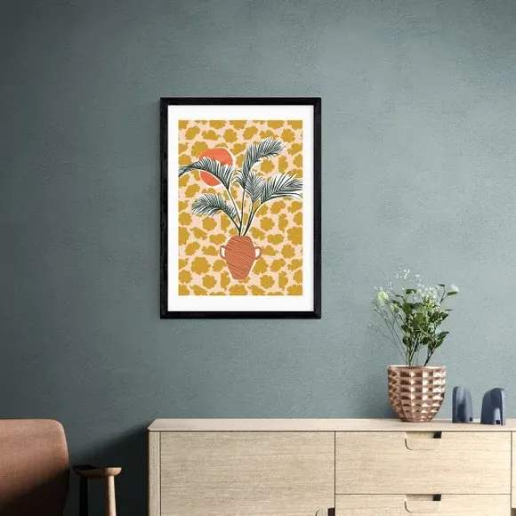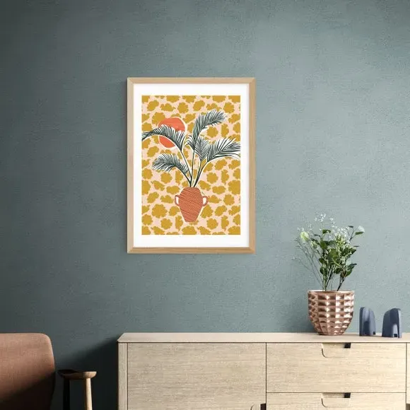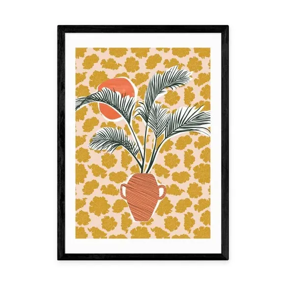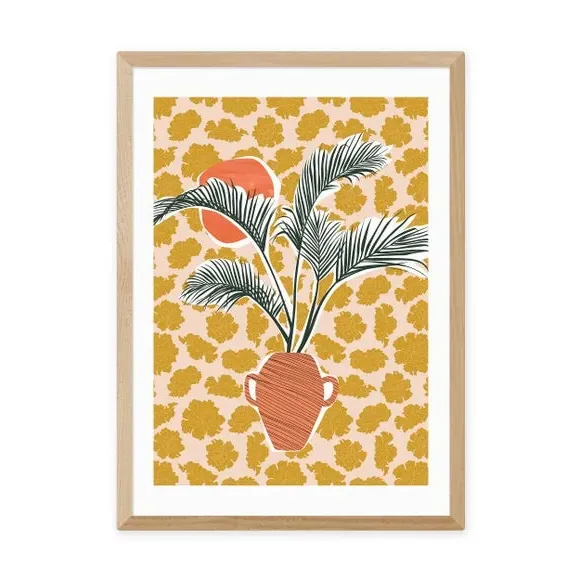 * Artwork by Sundry Society* Available in A1, A2, A3 & A4 sizes* Obeche Wood Frames available in black, white and oak effect* You can buy the print unframed too!* Prints are made using the Giclee printing process, lasting up to 70 years from fading* Printed on 210gsm acid free archival paper with a digital white border Brighten up your walls with the zingy palmy print by Sundry Society. The combination of texture and colour in this print makes it the perfect statement piece for any blank wall, adding a touch of tropical charm to your home. You are able to customise the size and frame for this print! Choose from a variety of frame options and then pick your size. This way you can find the best design to suit your home interior.