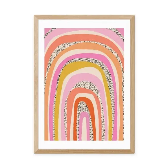 * Artwork by Sundry Society* Funky rainbow print* Portrait orientation* Printed on 210gsm acid-free archival paper* Available in A1, A2, A3 & A4 sizes* Frame options: black, white and oak wood effect* Available in an unframed option Add this funky, colourful print to a nursery or bedroom for a fun, alternative rainbow design to add decoration to blank walls. This print is made to last as it uses a Giclee printing process to stay vibrant and prevent fading over years. Each design is available in four print sizes and a variety of frame options, including unframed, so you can display your artwork however you wish.
