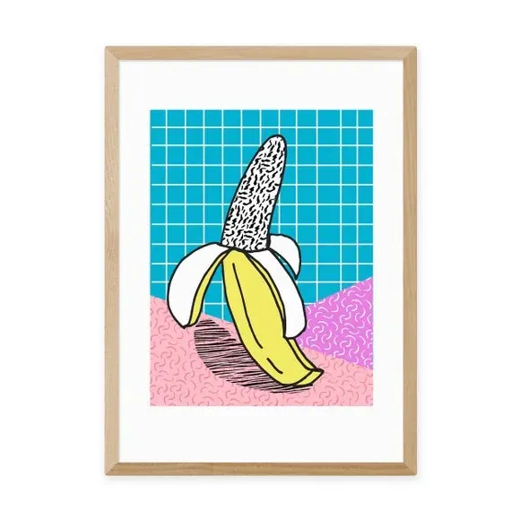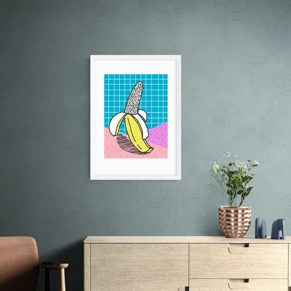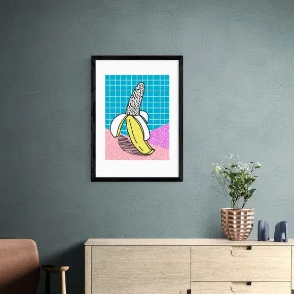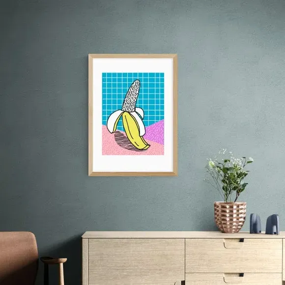 * Artwork by Wacka* Available in A1, A2, A3 & A4 sizes* Obeche Wood Frames available in black, white and oak effect* You can buy the print unframed too!* Prints are made using the Giclee printing process, lasting up to 70 years from fading* Printed on 210gsm acid free archival paper with a digital white border Bring a burst of colour and fun to your decor with this quirky Schweet print by Wacka, ideal for adding a playful touch to any room. This print is a vibrant and quirky piece with bold colours and a fun, cartoon-like illustration of a banana, perfect for adding a playful touch to any room. You are able to customise the size and frame for this print! Choose from a variety of frame options and then pick your size. This way you can find the best design to suit your home interior.