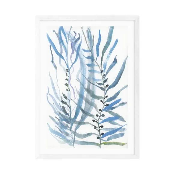 * Artwork by cartissi* Coastal style* Available in A1, A2, A3 & A4 sizes* Giclee printing process lasting up to 70 years from fading* Printed on 210gsm acid-free archival paper* Frames available: black, white and oak effect* Also available unframed Calm, elegant, and inspired by the sea — this coastal print by cartissi features graceful blue seaweed, bringing a soothing ocean vibe to your walls. Perfect for adding a touch of nature’s tranquility to any space. East End Prints are proudly printed and made in the UK, with a royalty paid to the artist for every print sold.