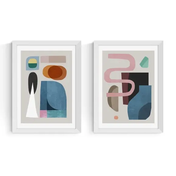 * Set of 2* Abstract shape design* Multicoloured* Printed on 210gsm acid-free archival paper* Available in A1, A2, A3 & A4 size* Frame options: black, white and oak wood effect* Available in unframed option This set of 2 Motel Shapes Prints feature multicoloured abstract shapes, for a hotel feel. Display them together for a striking feature, or apart for a cohesive look throughout your home. Choose from a range of sizes and solid Obeche wood frame styles, or unframed to suit your space.