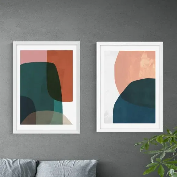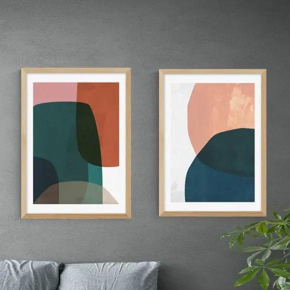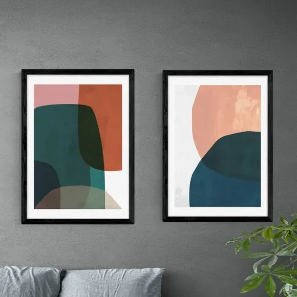 * Includes 2 prints* Artwork by Rafael Farias* Abstract style* Printed on 210gsm acid-free archival paper* Available in A1, A2, A3 & A4 sizes* Frames available: black, white and oak effect* You can buy the print unframed too! Abstract prints are here to make your home feel beautifully refreshed, so buy these two prints for a simple yet effect look. You are able to customise the size and frame for this print! Choose from a variety of frame options and then pick your size. This way you can find the best design to suit your home interior. Each piece of artwork has gone through a giclee printing process which will help the print stay vibrant for years to come to keep your home looking fresh.