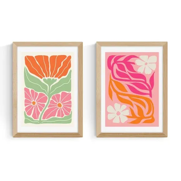 The botanical print set offers vibrant orange and pink designs with its acid-free archival paper construction. Its 210gsm weight provides durability and professional quality, while the Giclee printing process ensures long-lasting colour retention. The coordinated design suits gallery wall displays or standalone arrangements, and the multiple size options accommodate various spaces.