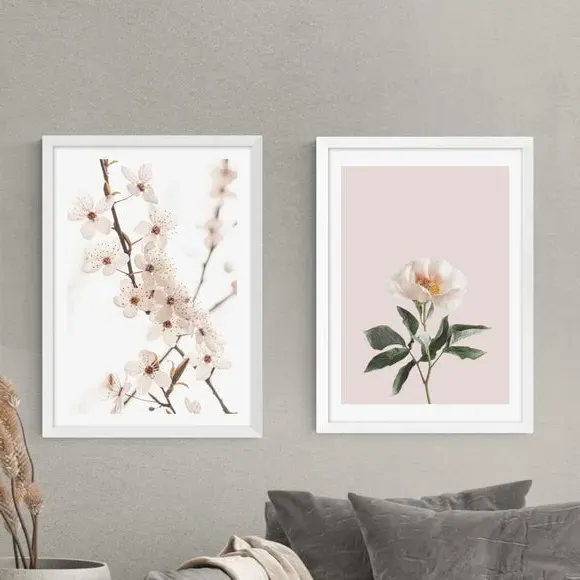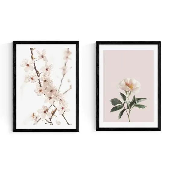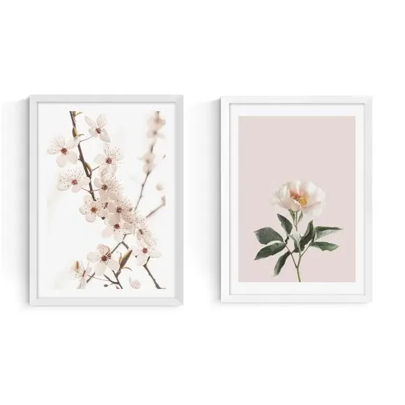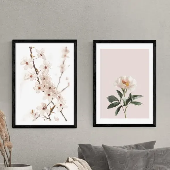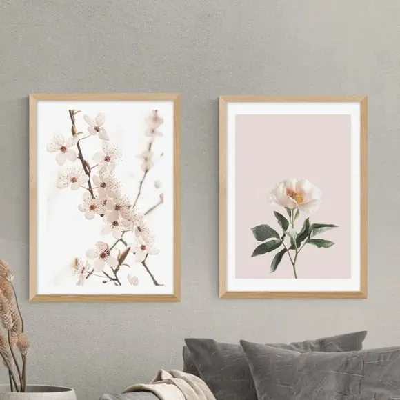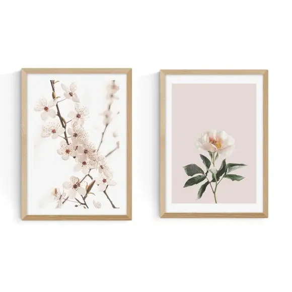 The delicate floral prints combine artistic elegance with botanical beauty in soft pink hues. Each print uses 210gsm acid-free archival paper and giclee printing technology, providing long-lasting color vibrancy and fade resistance. The coordinated designs work together for cohesive wall displays, with frame options in black, white, or oak effect finishes. Multiple size options from A4 to A1 accommodate various display spaces and preferences.