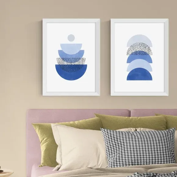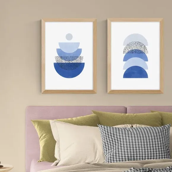 Set of 2 Geometric Wall Prints - Blue, Paper