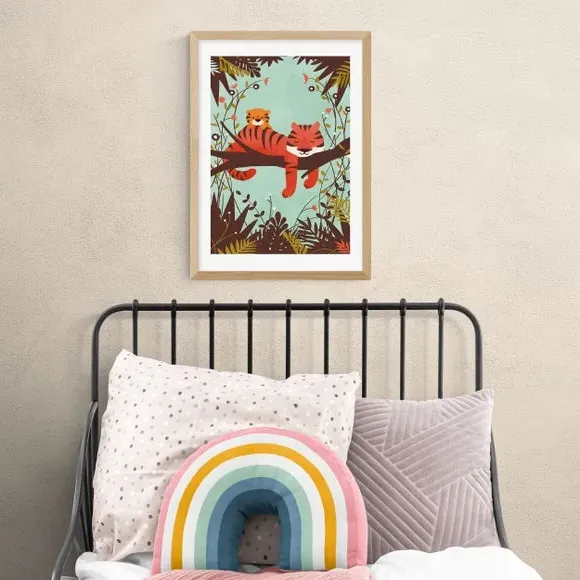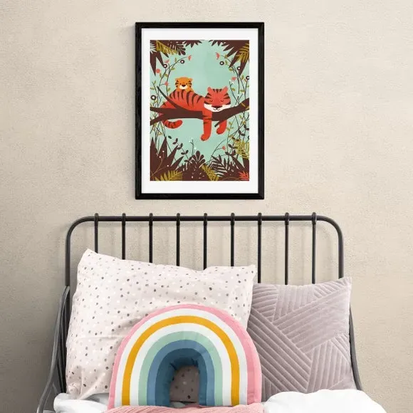 * Artwork by Jay Fleck* Animals style* Printed on 210gsm acid-free archival paper* Available in A1, A2, A3 & A4 sizes* Frames available: black, white and oak effect* You can buy the print unframed too! This adorable print is perfect for your family home. The tiny tiger cub rests on the back of the sleeping tiger, perfect for refreshing your home. You are able to customise the size and frame for this print! Choose from a variety of frame options and then pick your size. This way you can find the best design to suit your home interior. Each piece of artwork has gone through a giclee printing process which will help the print stay vibrant for years to come to keep your home looking fresh.