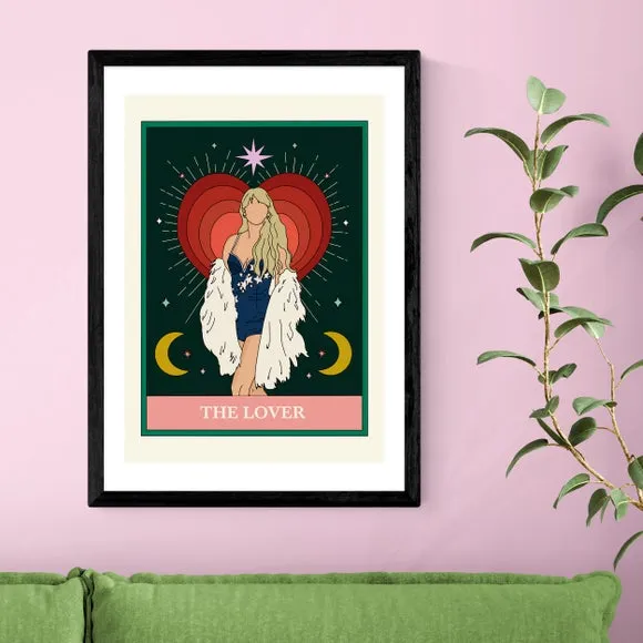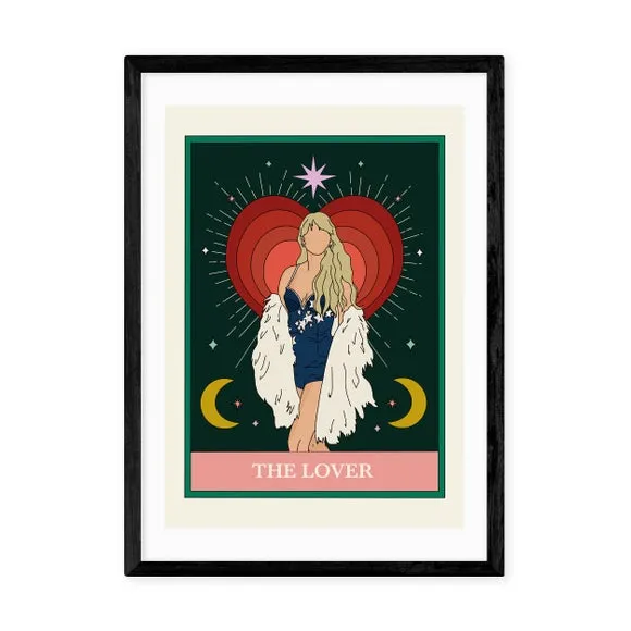 * Calling all Taylor Swift fans!* Music and tarot-inspired style* Printed on 210gsm acid-free archival paper* Available in A1, A2, A3 & A4 size* Frame options: black, white and oak wood effect* Available in unframed options Taylor Swift fans will love this Tarot-inspired print, championing Taylor's 'Lover' hit. Beautifully printed on archival paper, this print is fade-resistant and the colours are sharp and vibrant. Choose from an array of size and solid Obeche wood frame options, including unframed for your own display choice.