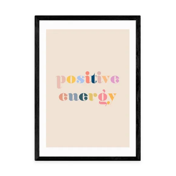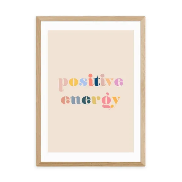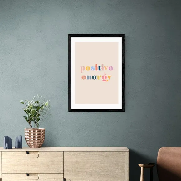 The wall print features vibrant typographic design with its positive energy theme, printed on 210gsm acid-free archival paper. Its giclee printing process provides long-lasting color vibrancy, while the customizable sizing options accommodate various display preferences. The print comes with frame choices in black, white, and oak effect finishes, and the archival-quality paper ensures durability over time.