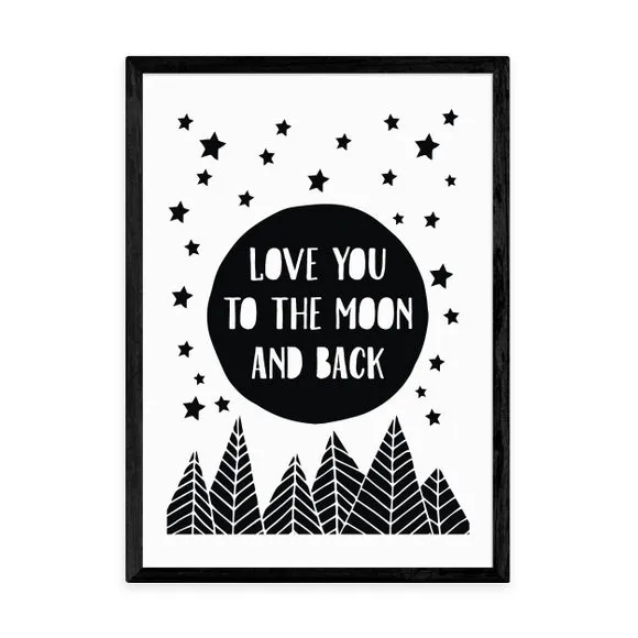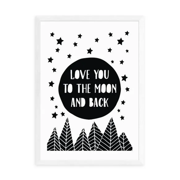 * Artwork by The Native State* Monochrome typographic print* Portrait orientation* Printed on 210gsm acid-free archival paper* Available in A1, A2, A3 & A4 sizes* Frame options: black, white and oak wood effect* Available in an unframed option Add this loving sentiment and monochrome patterned print to your walls for simple decoration and positive words by The Native State. Perfect adding to a nursery, bedroom or any space in the house, this print is made to last as it uses a Giclee printing process to prevent fading over years. Each design is available in four print sizes and a variety of frame options, including unframed, so you can display your artwork however you wish.