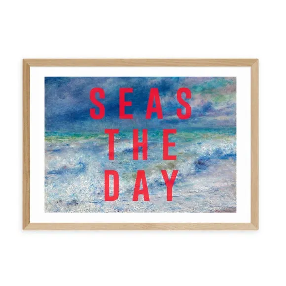 * Artwork by The 13 Prints* Typography design* Printed on 210gsm acid-free archival paper* Available in A1, A2, A3 & A4 sizes* Frames available: black, white and oak effect* You can buy the print unframed too! Seas the day and give your home décor a refresh with this print! You are able to customise the size and frame for this print! Choose from a variety of frame options and then pick your size. This way you can find the best design to suit your home interior. Each piece of artwork has gone through a giclee printing process which will help the print stay vibrant for years to come to keep your home looking fresh.
