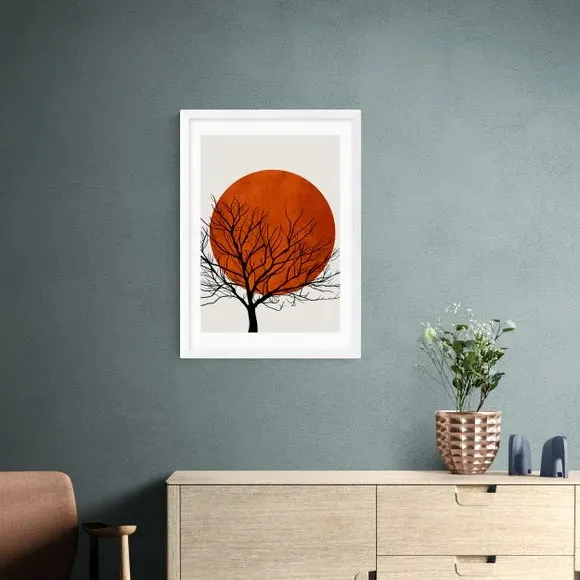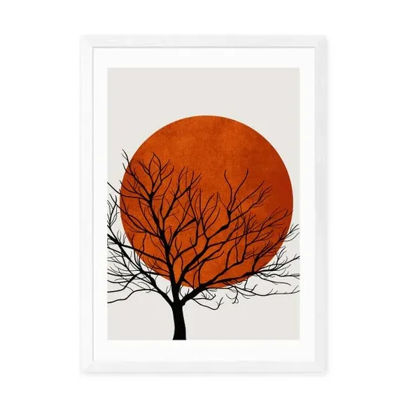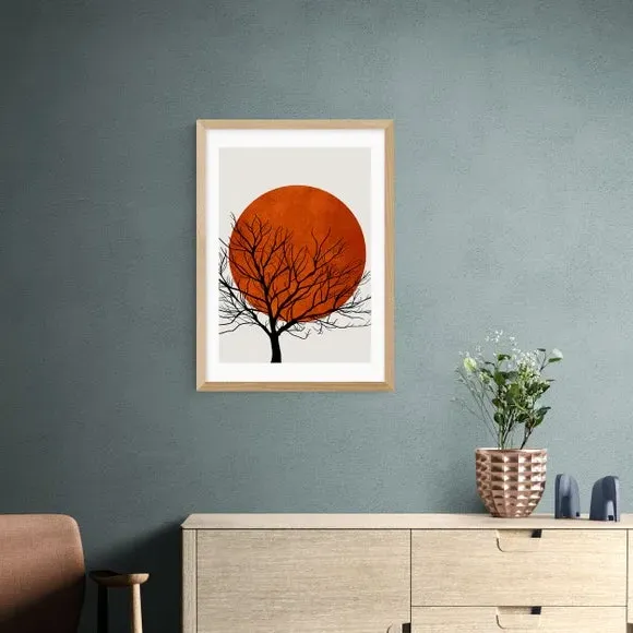 The Warm Winter print features rich red hues and intricate patterns that bring comfort and warmth to any space. Created through a giclee printing process, the artwork maintains vibrant colors for years of lasting appeal. Available in A1, A2, A3, and A4 sizes with optional black, white, or oak effect frames. The customizable sizing and framing options allow you to find the best fit for your interior design needs.