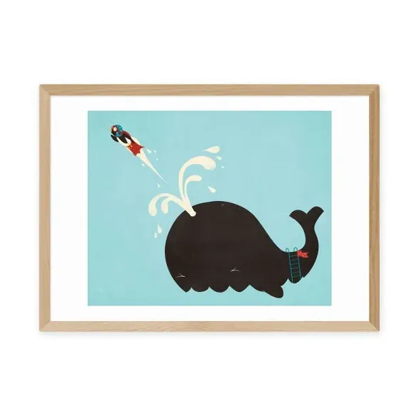 * Playful whale design* Bright, fade-resistant print* Printed on 210gsm acid-free archival paper* Available in A1, A2, A3 & A4 sizes* Frame options: black, white and oak wood effect* Available in an unframed option This playful whale is ready to add character and fun to your interior. With bright, fade-resistant colour, this print is carefully prepared using a Giclee printing process for crisp colour and long lasting impact. Available in A1, A2, A3 and A4 sizes and unframed or in a choice of solid Obeche wood frames in black, white or oak effect finishes.