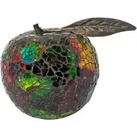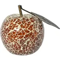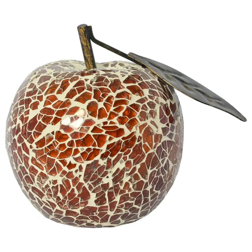 Add a touch of luxury and modern charm to your home with the Furniture in Fashion Clisson Decorative Mosaic Glass Apple Fruit with Leaf in Black. This striking decorative accent features a beautifully crafted apple design adorned with shimmering black mosaic glass, complete with a delicate metallic leaf detail. Its reflective surface and unique texture create a glamorous look that enhances any interior dcor. Whether used as a standalone statement piece or paired with other decorative items, the Clisson Mosaic Glass Apple from Furniture in Fashion brings elegance and artistic flair to your living room, dining area or office. Ideal for contemporary or glam styled homes, this eye catching ornament effortlessly blends sophistication with a hint of playfulness. FEATURES : Material : Glass Mosaic Pieces Finish : Black The mosaic glass apple makes a fantastic display item to go around the home, especially grouped in a bowl as the centre piece at the dining table Each apple has a unique pattern and comes in a variety of colours Part of our range of mosaic glass giftware, choose from a range of different fruits and decorative balls A stylish addition from Furniture in Fashion, known for elegant and contemporary home dcor pieces A detailed apple shape finished in black mosaic glass with a metallic leaf accent Shiny mosaic surface reflects light beautifully for a dazzling, luxurious effect A great decorative gift idea for housewarmings, birthdays or special occasions Available at an affordable price Images shown are for illustration purpose only DIMENSIONS : Height : 9cm Diameter : 9cm