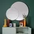 The Valance Round Wall Mirror offers a window-style design with its black iron frame that adds contemporary appeal to any space. Its circular form provides balanced reflection while the MDF backing ensures durability and stability. The keyhole fixing system allows for secure wall mounting, and the plain glass delivers clear, undistorted reflection. W60 x D2 x H60 cm