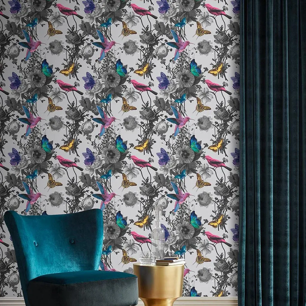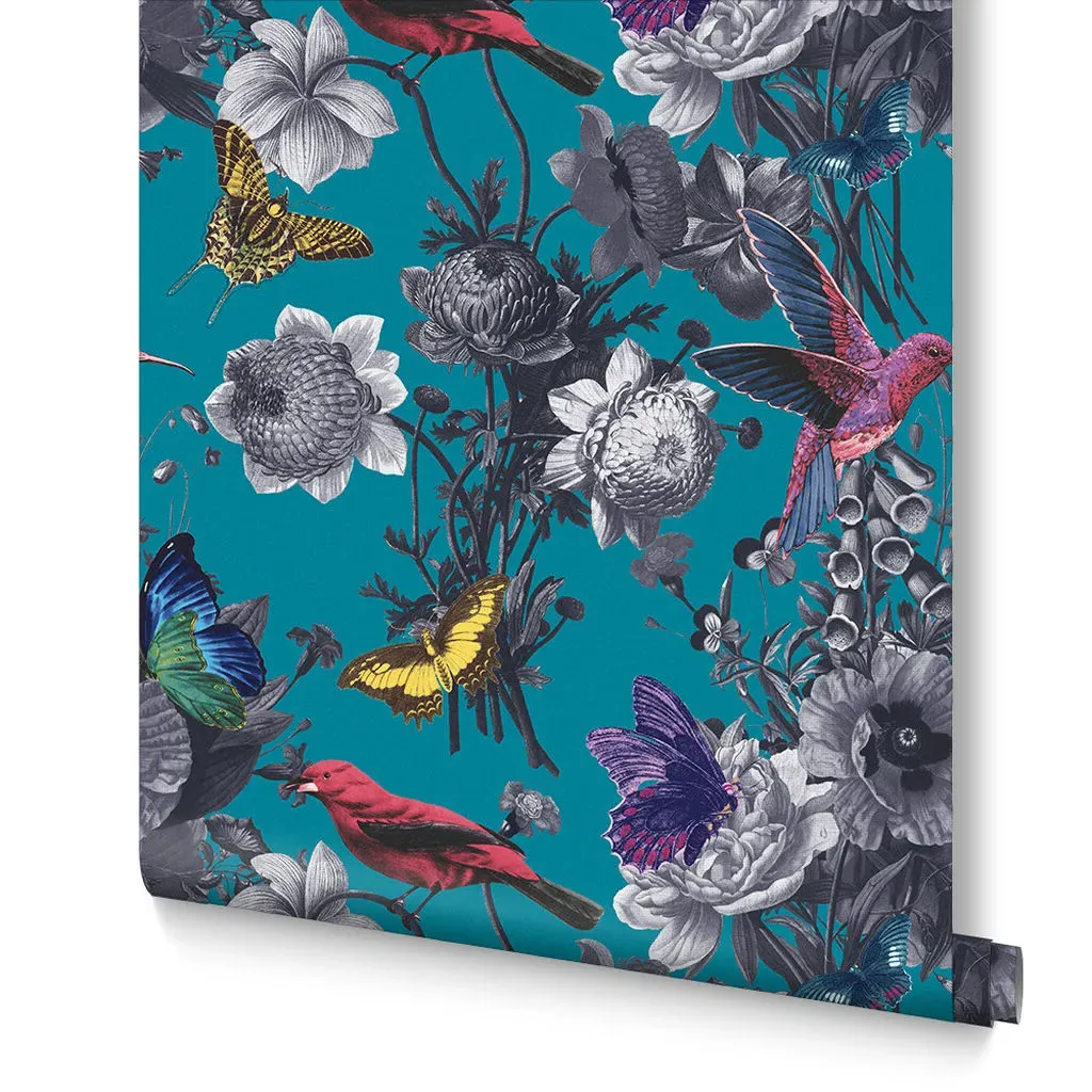 Bloomsbury Neo Mint captures the delicate designs of the 20th Century. Bright, vibrant intertwining florals are at the centrepiece of this airy wallpaper, accompanied by beautiful butterflies in a serene mint setting - blooming lovely!