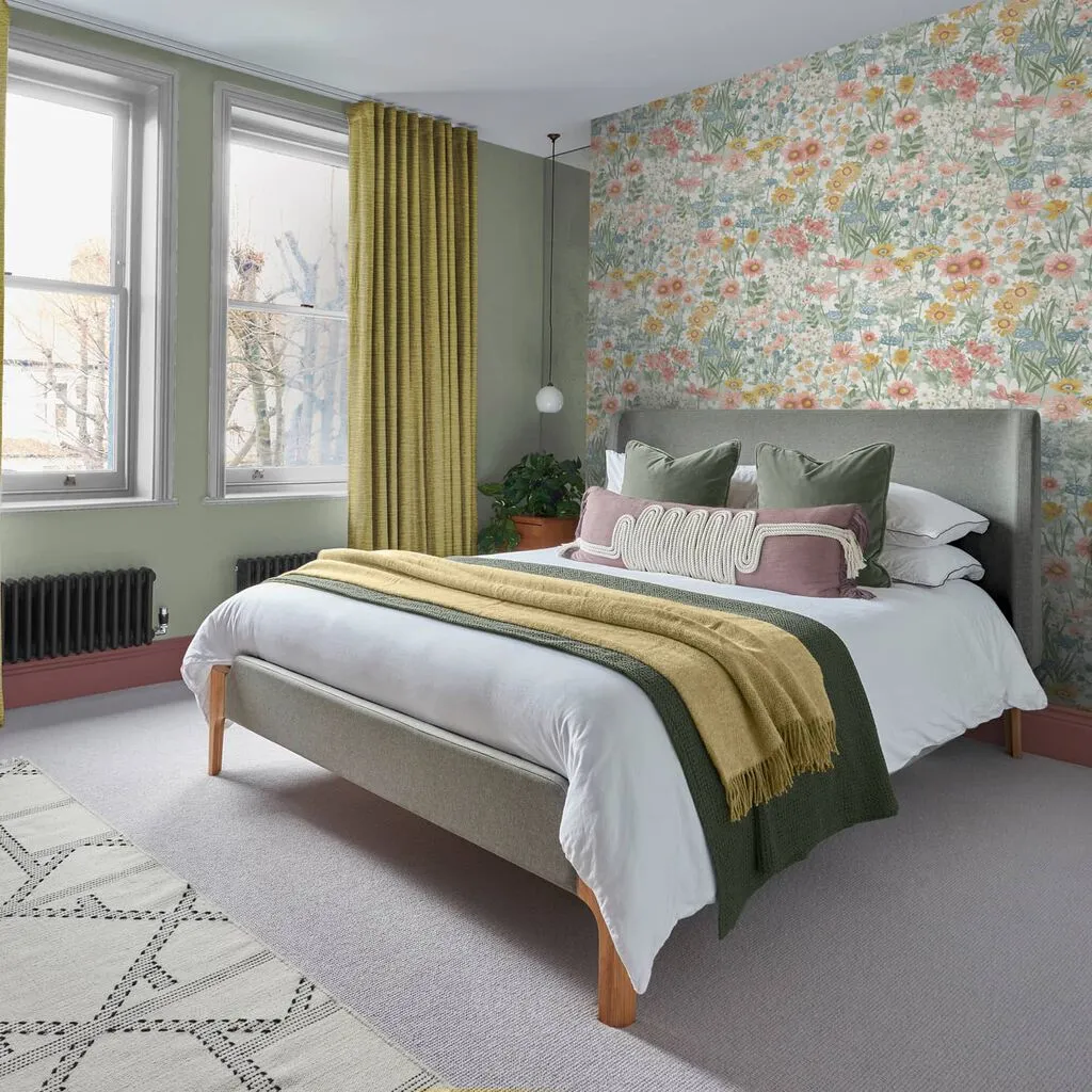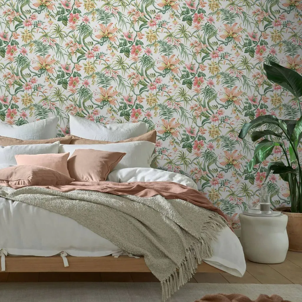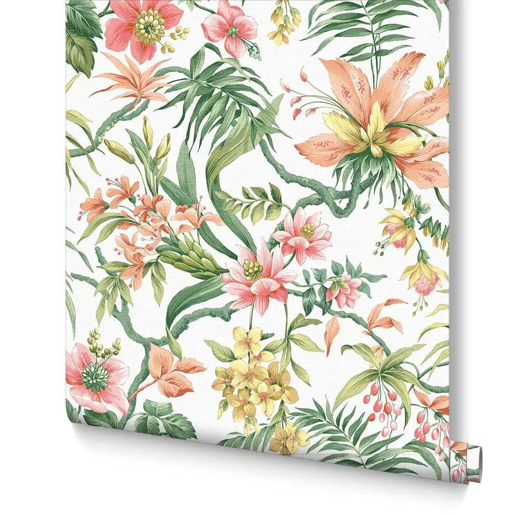 The Bloomsbury Neo Mint wallpaper captures delicate 20th Century design with bright, vibrant intertwining florals as the centrepiece. Its serene mint setting provides an airy backdrop, while beautiful butterflies accompany the botanical motifs throughout. The eco-friendly construction ensures sustainable coverage, and the vintage-inspired florals bring timeless garden charm to interior walls.