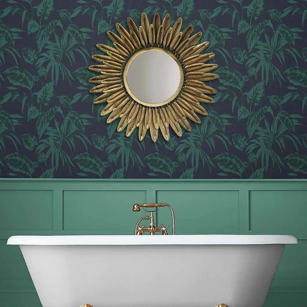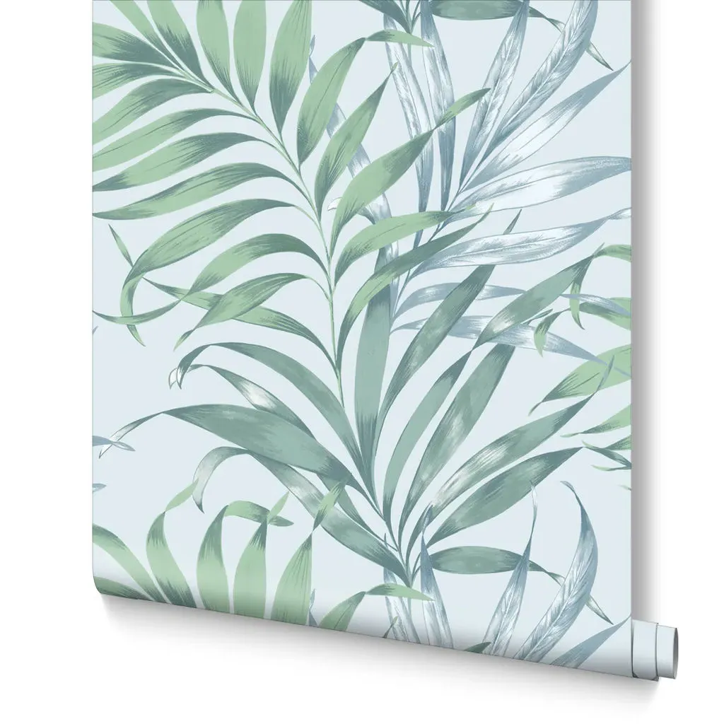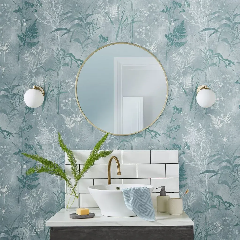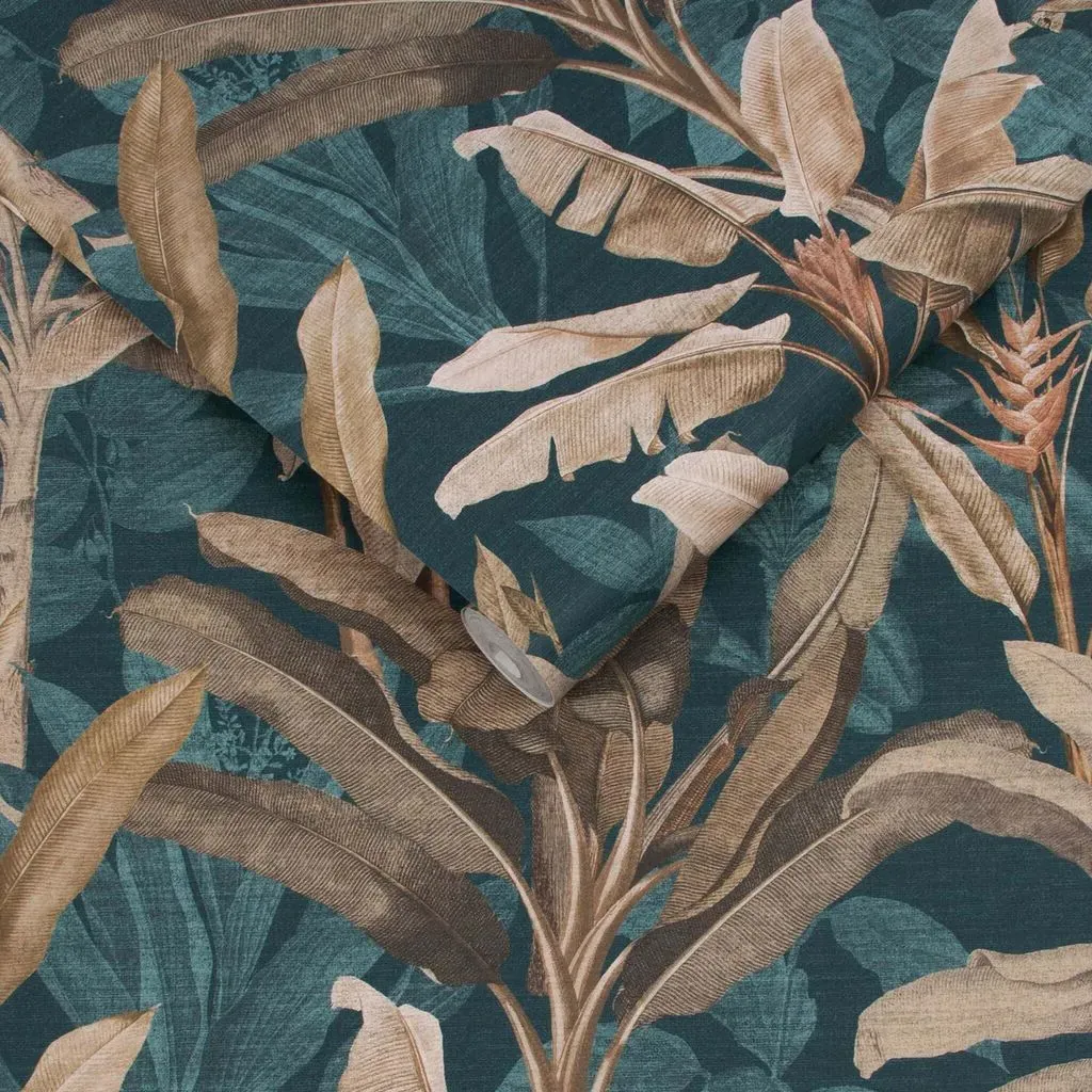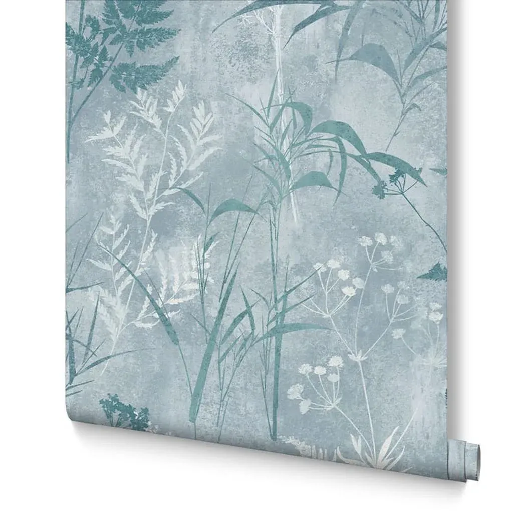 The Botanica Midnight wallpaper combines bold palette with sophisticated design through its simple leaf motif. Featuring a fading ombre metallic effect on stunning matt paper, this eco-friendly design offers effortless application. The metallic highlights add depth and visual interest against the blue backdrop.