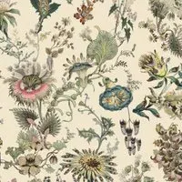 The Flora Fantasia wallpaper offers an enchanting floral design painted in watercolour against a sky blue backdrop. Its botanical motifs are inspired by rare 1880s fantasy flower illustrations, creating visual interest and artistic charm. The watercolour painting technique adds depth and texture, while the sky blue base brings a fresh, calming presence to walls.