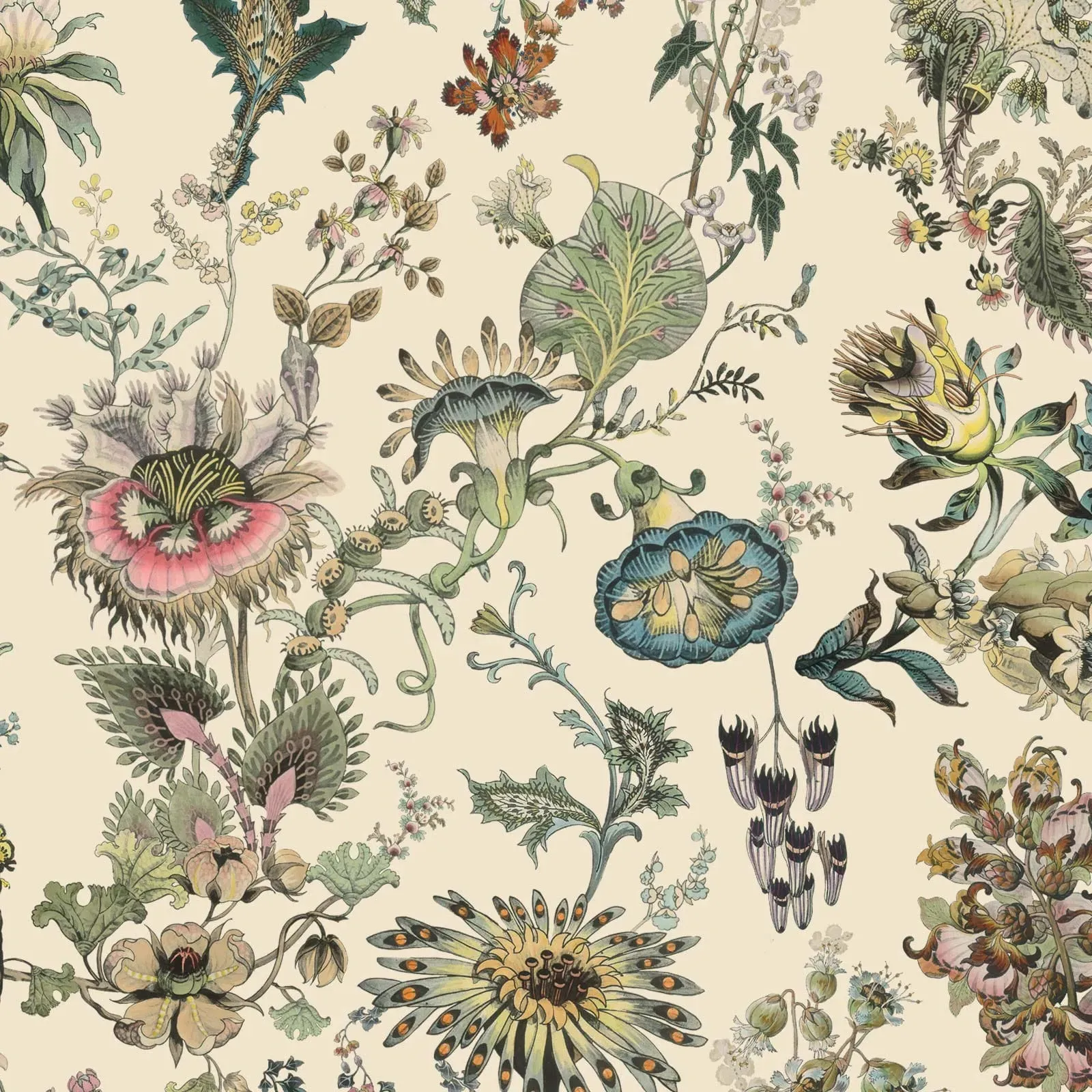 An imaginary floral wonderland unfurls across FLORA FANTASIA. Painted in glorious watercolour against a rich Amber backdrop, this wallpaper is our modern retelling of a print we found in Fleurs de Fantaisie by J. Buchert: an extraordinary book of fantasy flowers dating back to the 1880s, its so rare that only a few copies still exist in the world today.