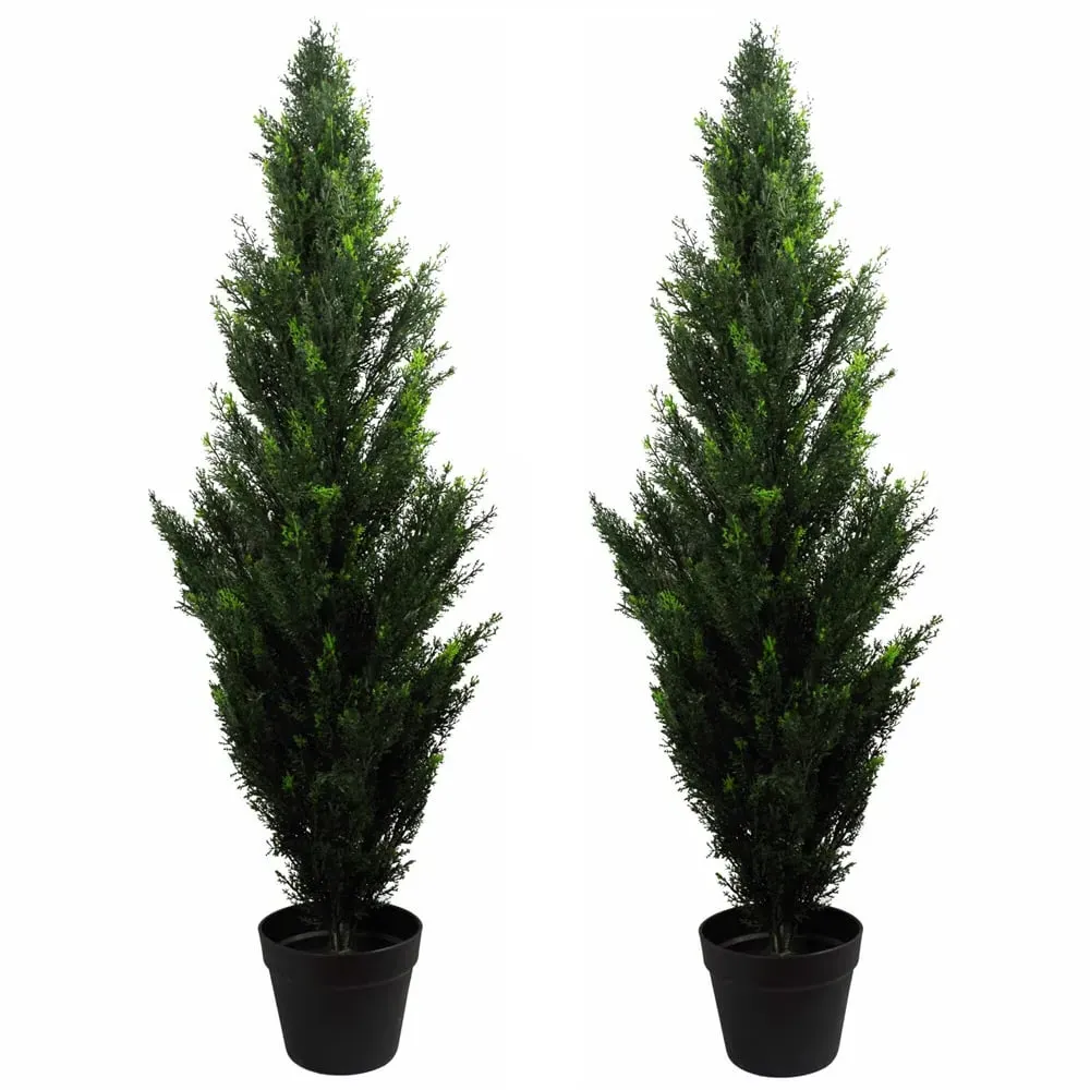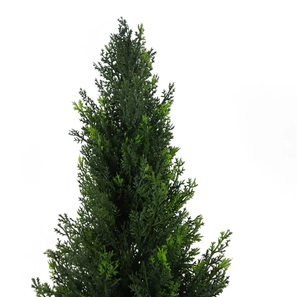 These artificial cedar trees are UV-protected and designed for outdoor use. They have ultra-realistic foliage and they are certainly easy to mistake for the real thing. There are no natural components on these trees - the central stem is metal bound together for a strong- durable tree. These look fantastic when placed inside a large tub or planter and are suitable for use both indoors and outdoors. Measures 60cm (2ft) from base to top with a width of 20cm when arranged as shown in our photos. This tree has 280 leaves. These artificial cedar trees are available in a range of sizes. This tree can be used indoors or outdoors in a sheltered spot. We recommend protecting from extremes of temperature to extend life. Stems are wired so this can be arranged to fit your space perfectly. It is highly realistic with botanically accurate foliage. Our fake cedar trees look very realistic even down to the slightly lighter green tips of the leaves. It comes potted in a plain plastic pot and is ready to display. You can easily put this inside a larger planter if you wish then cover it with gravel or bark for a realistic effect. The plastic pot comes in measures 13cm x 13cm.