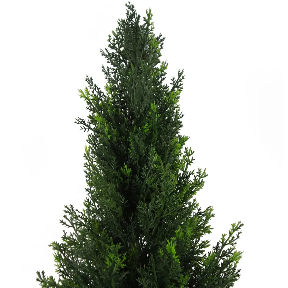 The artificial cedar tree offers ultra-realistic foliage with botanically accurate leaves featuring light green tips. Its metal-bound central stem provides durability and strength, while the UV-protected construction suits both indoor and outdoor use. The wired stems allow flexible arrangement to fit your space, and the tree comes ready to display in a plastic pot. W20 x D20 x H60 cm with 280 leaves.