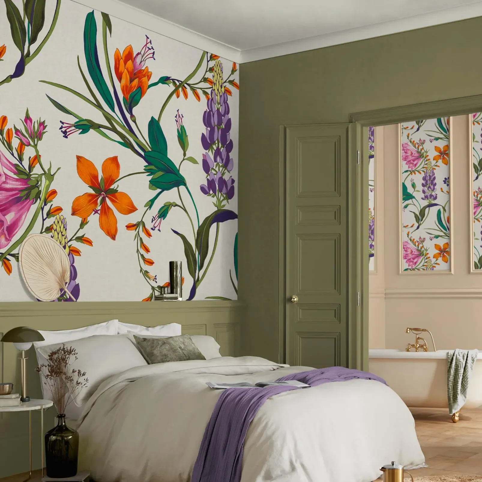 Let the Chinoiserie Ochre Mural be the centrepiece of your space, creating a delightful ambiance that fosters relaxation and creativity. It serves as a celebration of the vibrant colours of life with it's yellow background, reminding you to appreciate the little joys and wonders that nature has to offer. With this mural, you can transform your home into a haven of inspiration and beauty, where every glance brings a smile and every moment feels like a breath of fresh air. If used solely on one wall, why not pair with one one of our perfectly partnered paints to complement the side walls, ceiling and woodwork, completing the full look of the room by adding a pair of our bespoke roman blinds or curtains in either our Elements Sunshine fabric or Ethereal Mocha.