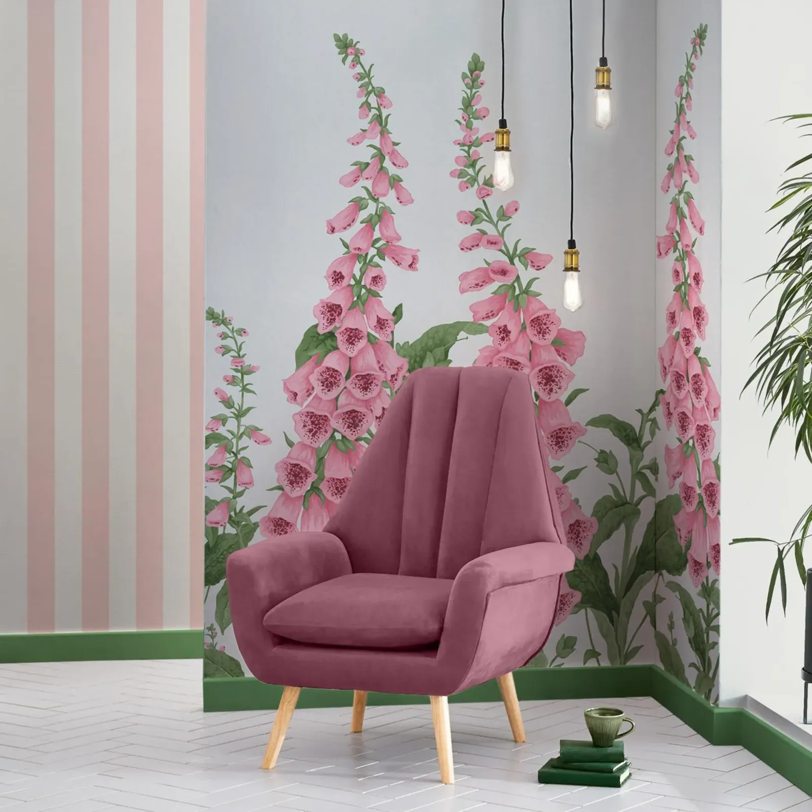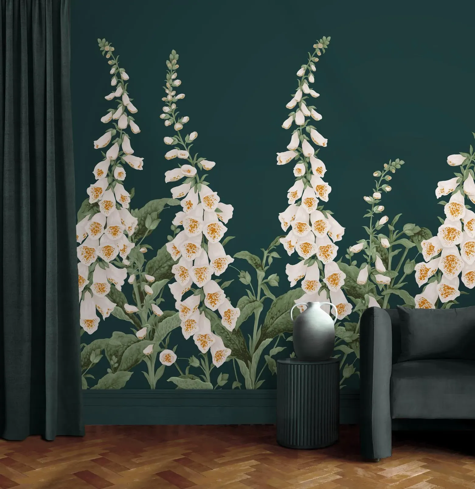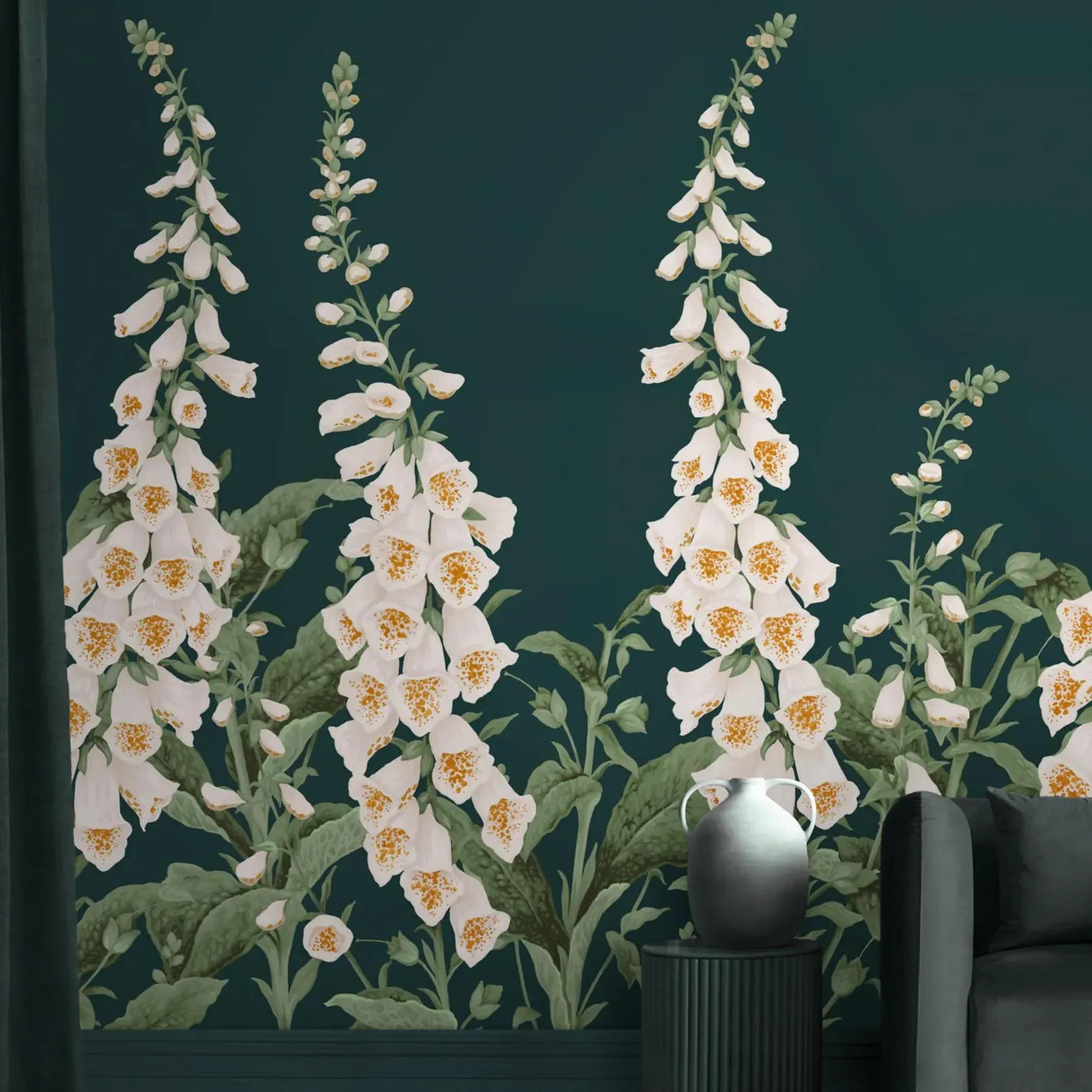 The Chinoiserie Ochre Wall Mural features vibrant botanical motifs against a warm yellow background that creates a delightful focal point. Its intricate chinoiserie design adds visual interest while maintaining a bright and uplifting atmosphere. The made-to-measure construction ensures precise fitting, with durable materials that provide lasting beauty and easy maintenance.