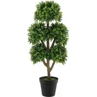 Enhance your space with this impressive Costway Artificial Boxwood Ball Topiary Tree In Pot 3ft. Featuring lush leaves, a simulated trunk, and twisted PE vines, it offers a vivid look. Made from high-quality PE, it is odourless, allergic-proof, and UV-protected. The cement-filled pot ensures stability, making it perfect for any setting.