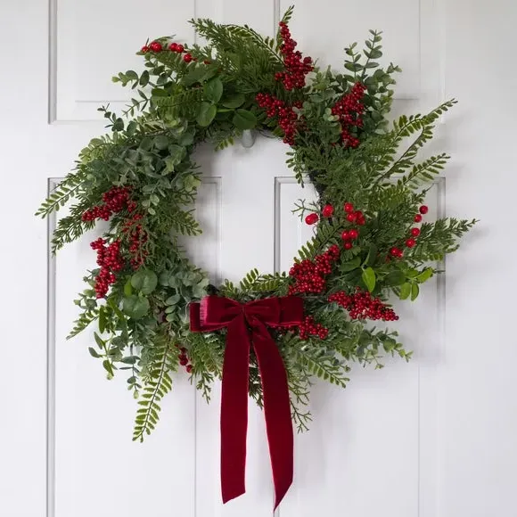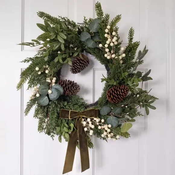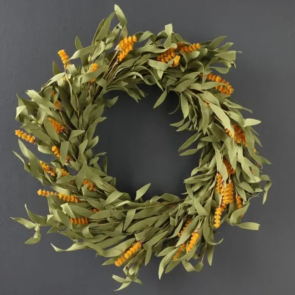 Introduce a touch of beauty and festivity to your home with the Living and Home Green Artificial Lavender Round Door Wreath. Made entirely from PVC, this wreath boasts a long-lasting freshness that will endure throughout the year. It's plump lavender and verdant green branches lend a charming, romantic ambience with elegant hues. It also comes with a convenient string, allowing for simple hanging.