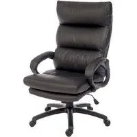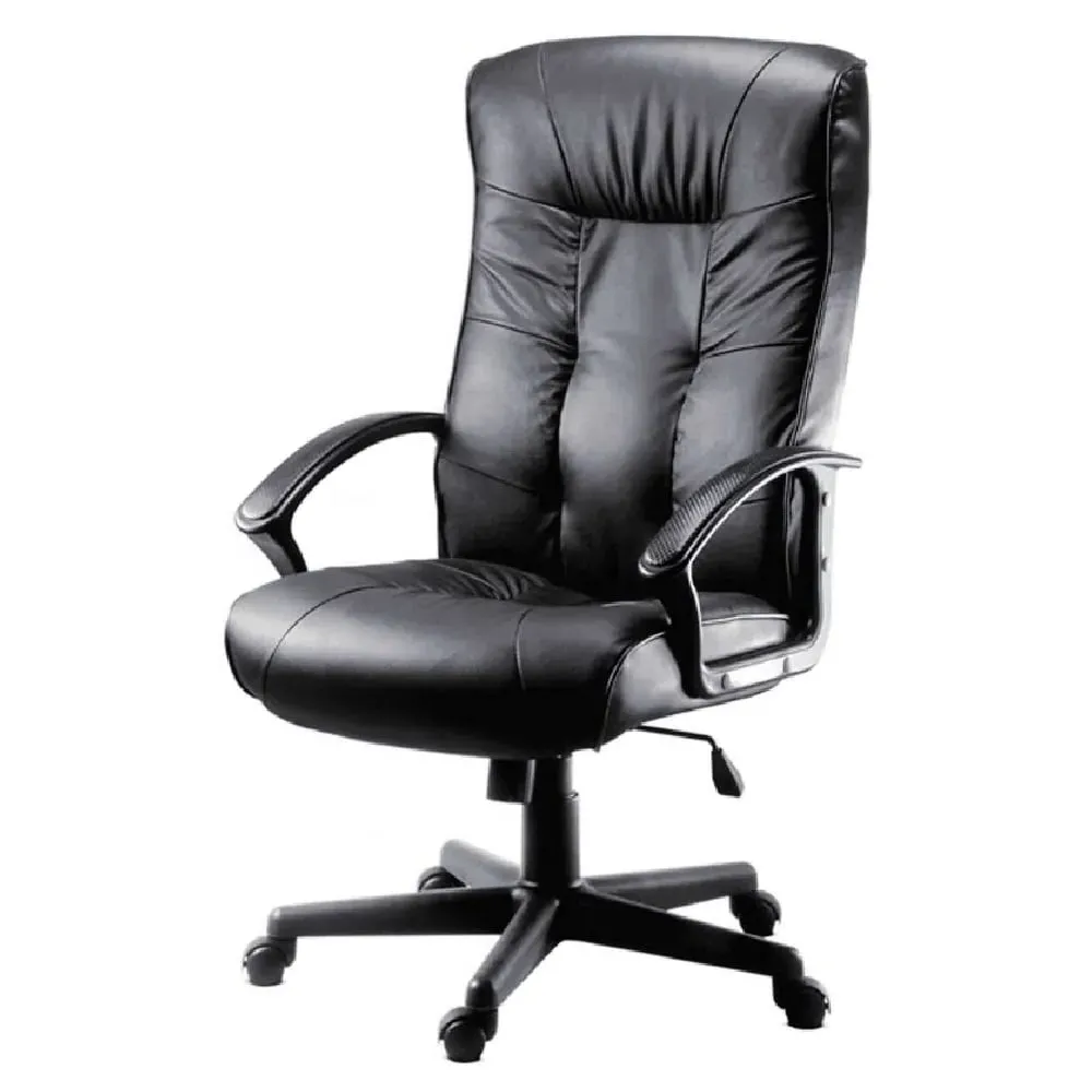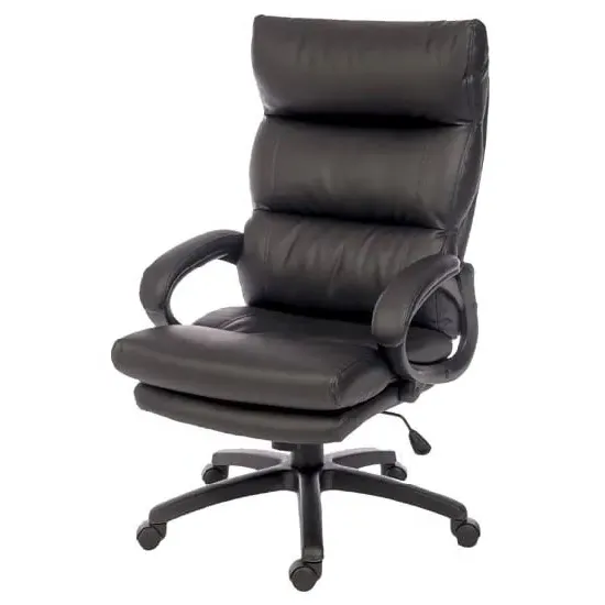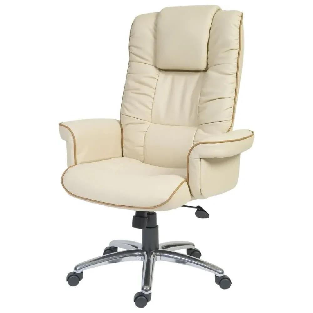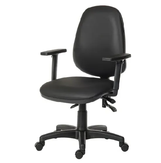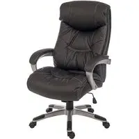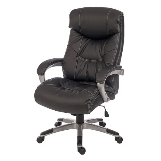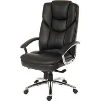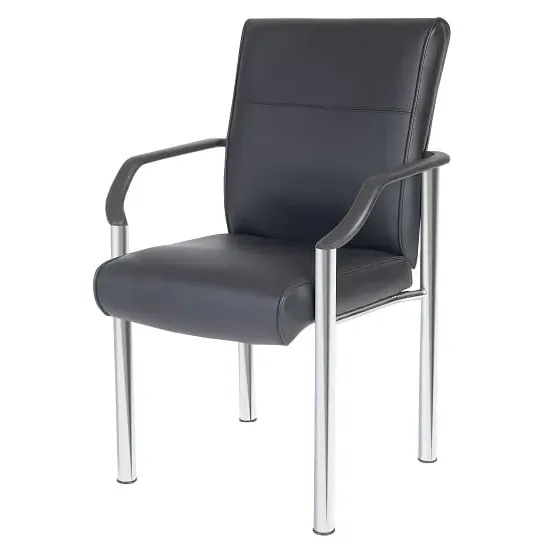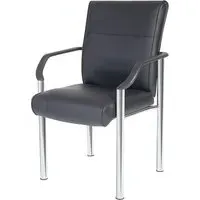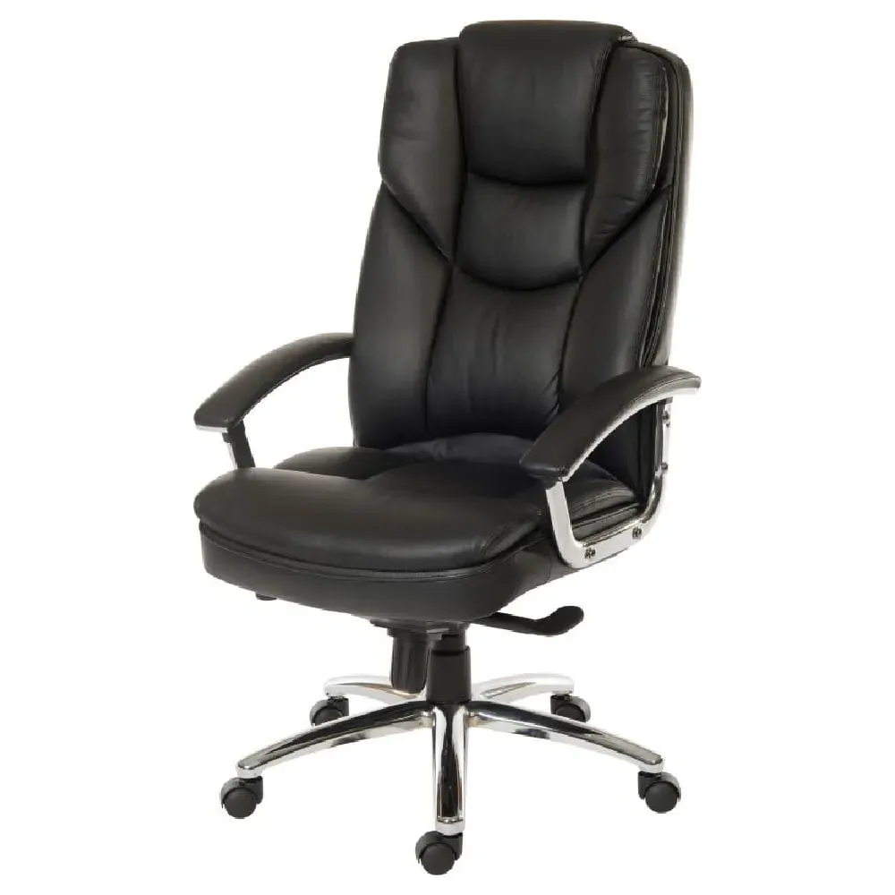 The Civo Office Chair offers ergonomic support with its curved, hollow backrest design, featuring black PU leather upholstery and discreet stitching throughout. Its low armrests complement the round seat for comfortable positioning, while the reflective chrome base with claw design provides stability. The hooded castor wheels enable swift movement across surfaces, and the flexible PU fabric adapts to your posture. W51 x D50 x H94cm.