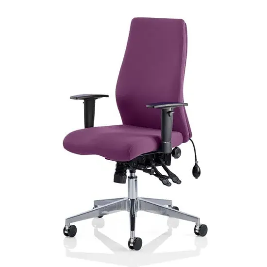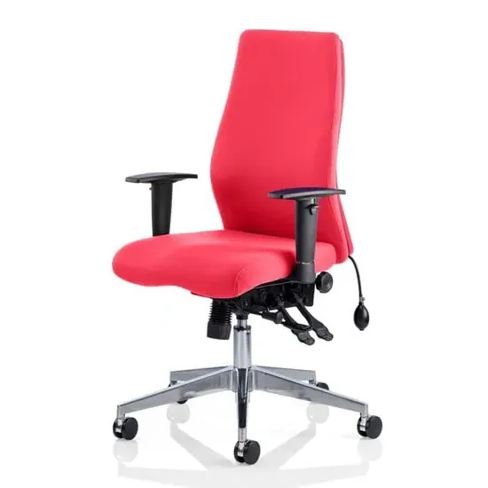 The Onyx chair is a fresh, contemporary office chair that offers a range of inspired features such as a multi-functional asynchronous mechanism with multiple adjustments and a contoured foam seat and back for extra support and comfort. The Onyx is a top choice for a posture task chair. Available in black or blue fabric and bonded leather upholstery options. Optional headrest variant available. FEATURES : Material : Fabric Finish : Black Seat slide Contoured foam Ratchet back height adjustment Adjustable arms 3 lever mechanism Pump up lumber Brushed aluminium base UK crib 5 foam and fabric Gas lift tested up to 135kg Usage: Task 24/7 Most Stylish and Unique piece of furniture Matching furniture available Images shown are for illustration purpose only Available at an affordable price Dimensions: Seat Width : 450mm Seat Depth : 470-540mm Seat Height : 490-590mm Back Width : 430mm Back Height : 590-640mm Arm Width : 445mm Arm Height : 660-760mm Overall Width : 610mm Overall Depth : 670mm Overall Height : 1210mm