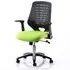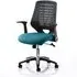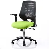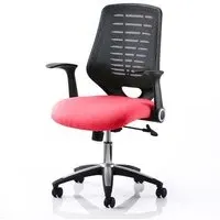 The Relay Task Office Chair combines breathable mesh construction with bonded leather seating for enhanced comfort. Its soft mesh backrest features durable nylon outer casing that promotes airflow, while the bonded leather seat adds durability and support. The folding arms provide workspace versatility, and weight tension control allows personalized adjustment. The silver-accented base with gas lift supports up to 150kg. W65 x D61 x H98-107 cm.