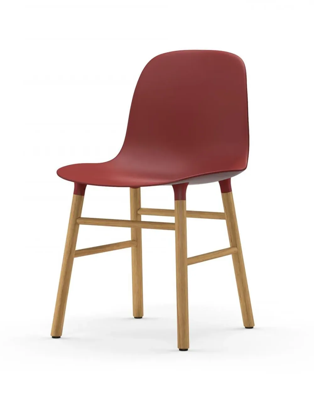 The Form Chair offers a unified shell design with its innovative seat-to-leg connection system. The molded plastic seat provides comfortable contoured support, while the oak wooden legs add natural warmth and stability. Its seamless construction combines durability with versatility, making it suitable for dining, office, or occasional seating needs.
