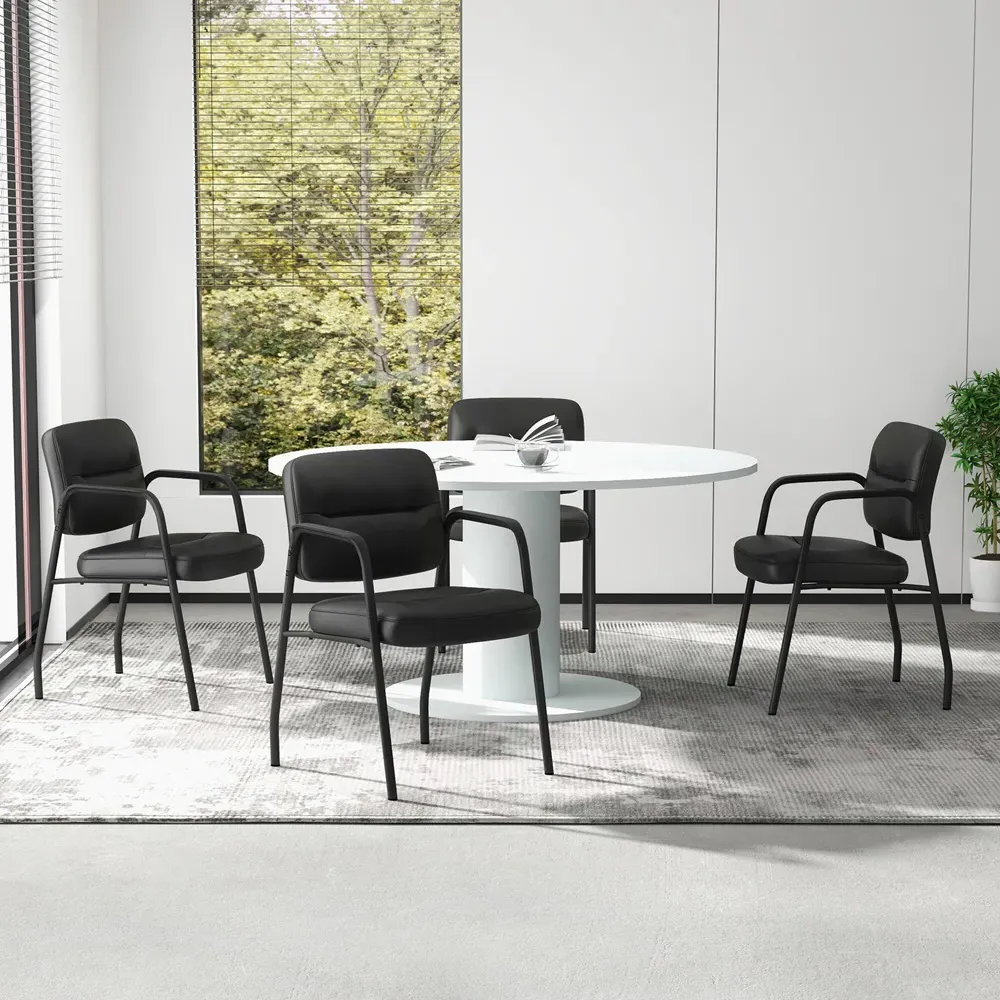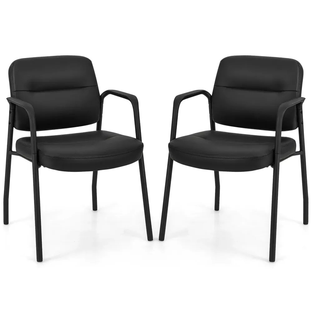 Add comfort to your working space with the Costway Black Office Chair Set of 2. This office desk chair features a specially shaped backrest and seat, providing ideal support for your back, waist, and hips to enhance seating comfort. The soft-padded seat helps relieve the tiredness from long hours of sitting, and the durable PU leather cushion is wear-resistant, skin-friendly, and easy to clean. The seat height is adjustable between 42 and 52 cm to accommodate different users, and the chair swivels 360 degrees for easy communication with colleagues. Additionally, the smooth, mute universal casters are floor-friendly and leave no scratches. The seat cushion, covered in waterproof and skin-friendly PU leather, is filled with high-density sponge for maximum comfort. It is supported by a heavy-duty 5-claw galvanized base, the chair has a weight capacity of up to 150 kg and features upgraded PU casters for smooth, quiet movement. Assembly is straightforward with no complicated tools required, and the PP seat and PU leather cushion are easy to clean, ensuring minimal maintenance.