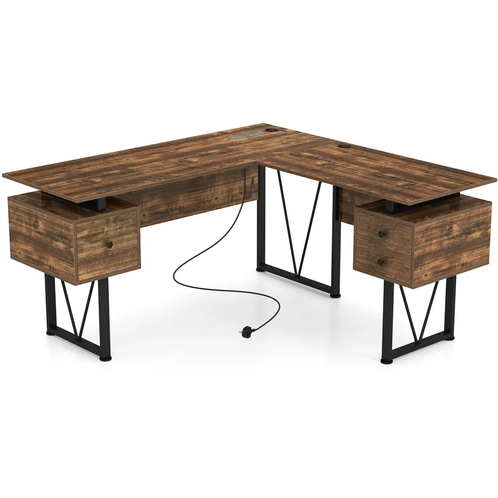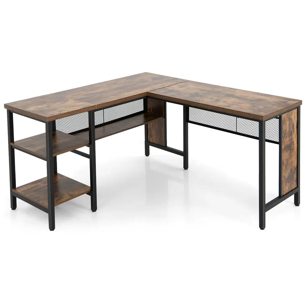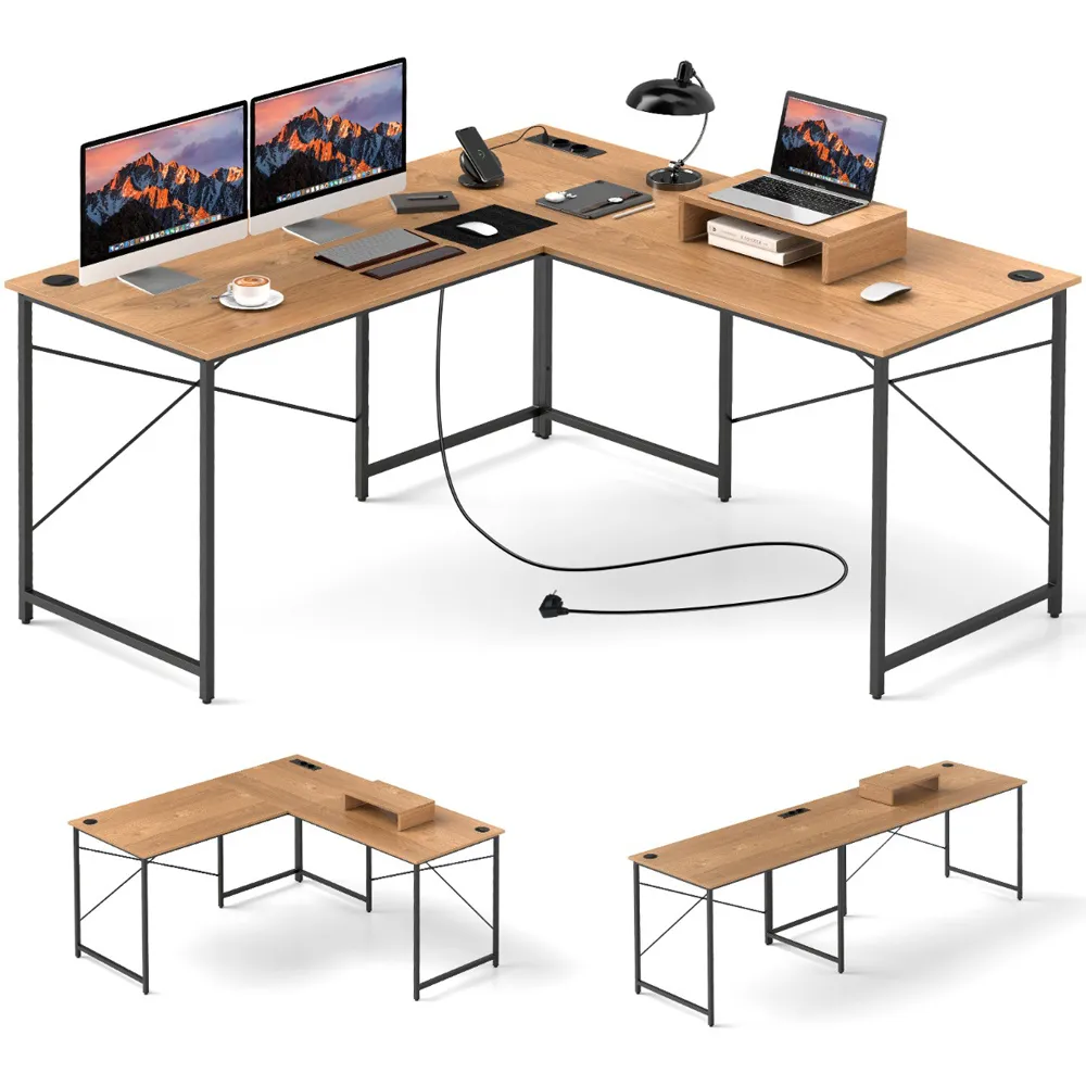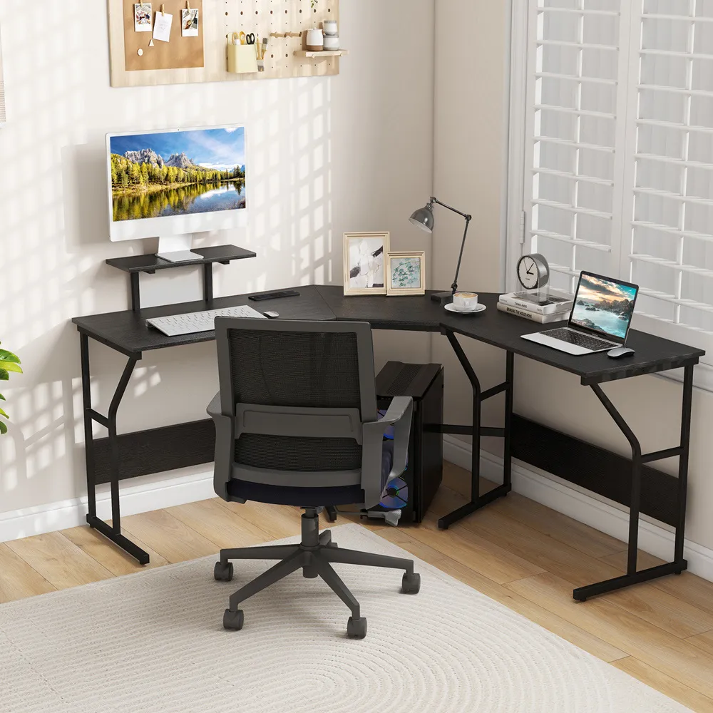 Boost your productivity with the L-shaped Computer Desk that offers a generous 130 x 130cm work surface, perfect for multitasking with multiple monitors and essential devices. Designed for efficiency, this desk features two built-in cable grommets to keep your workspace tidy and wire free. Additionally, it includes two extra storage shelves that are ideal for organising documents and office supplies; the middle shelf can even be removed to accommodate a computer host. Crafted with a chic black finish, this desk not only enhances your work efficiency but also complements various office decors seamlessly.